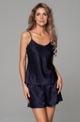 Комплект Mia-Amore состоит из топа на тонких бретелях и шорт. Изделия комплекта выполнены из смесового шелкового жаккардового полотна.