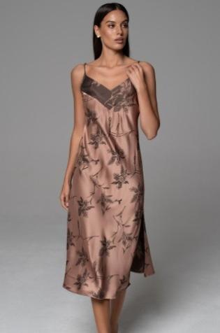 Эффектная длинная сорочка Mia-Amore на широких бретелях без подреза под грудью с вырезом «каре». Изделие выполнено из смесового шелкового жаккардового полотна. По низу боковых швов обработаны разрезы для свободы движения.