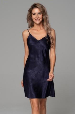 Короткая сорочка Mia-Amore на тонких бретелях с отрезными чашками из принтованного смесового шелкового полотна, верх декольте и низ сорочки декорирован кружевом, под линией подреза расположены кружевные вставки. Сорочка украшена бантиком с подвеской.