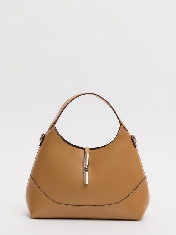 Хобо габарита М — аксессуар с продуманной функциональностью. Актуальная форма с цельнокроеными широкими ручками освежает классический дизайн, делая его современным и стиль