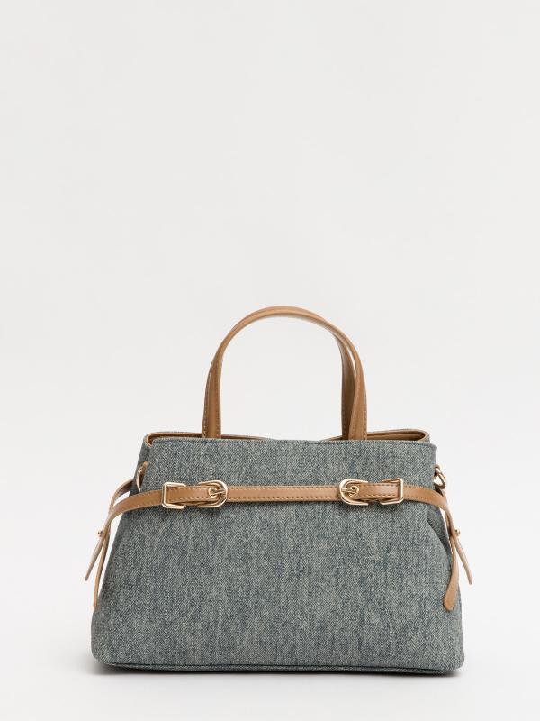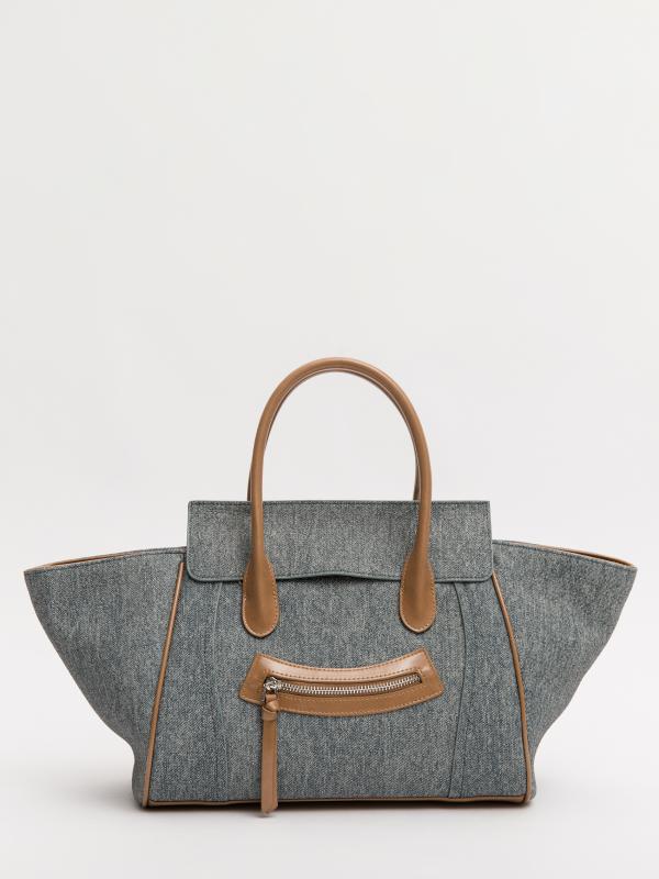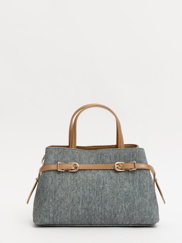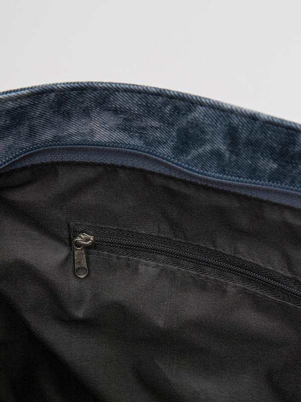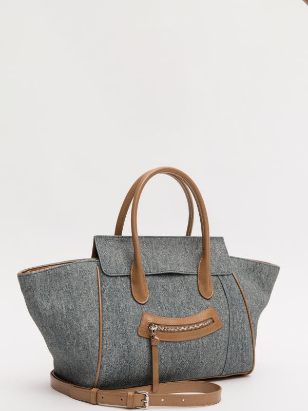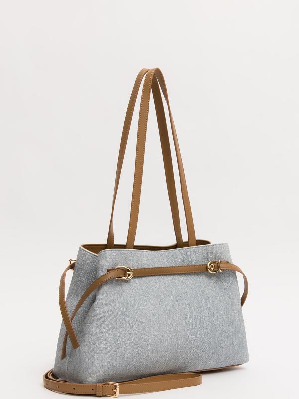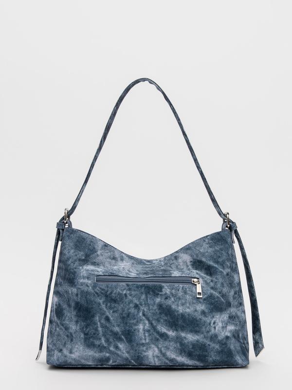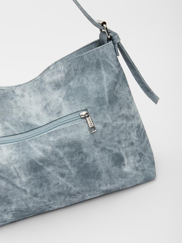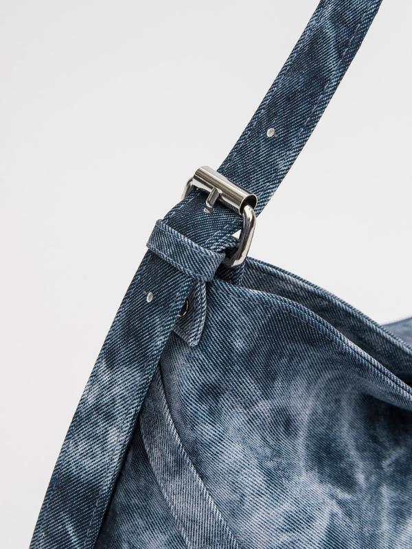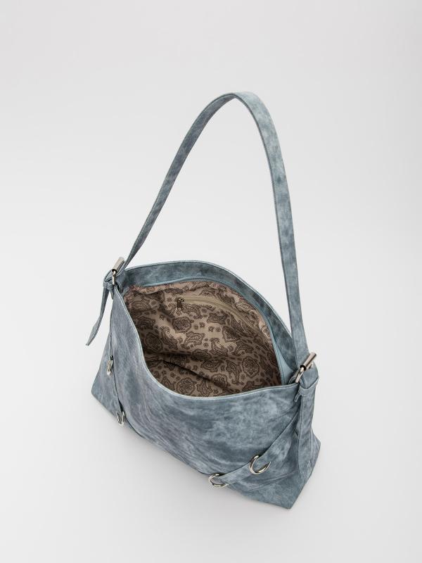 Женственный акцент с трендовыми деталями. Элегантная форма хобо с декоративными ремнями и металлической фурнитурой представлена в голубом оттенке. Сочетание винилискожи с отделкой под деним и эффектом тай-дай