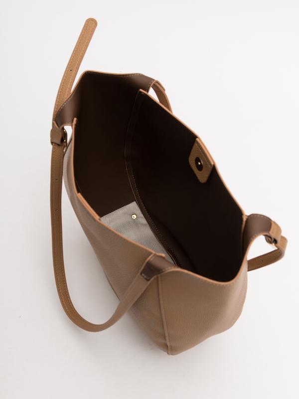 Тоут габарита L — элегантная вместительность для безупречного делового стиля. Трендовый силуэт вытянутого прямоугольника со стильными складками создаёт дополнительный объё