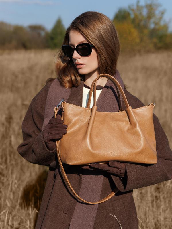 Этот вместительный тоут габарита М выполнен в эстетике ретро-классики и создан для каждодневного использования. Его мягкая форма с изящными складками, из которых плавно выходят ручки,