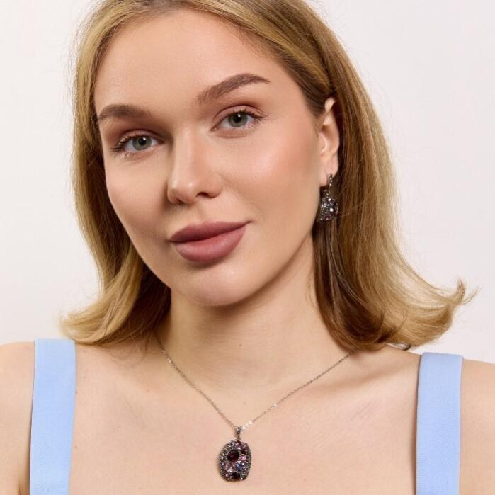 Размер серьги: 3,7*1,6 см. Замок: английский. Размер кулона: 3,6*2,2 см. Вес комплекта: 16 гр. Внимание! Цепочка в комплект не входит.