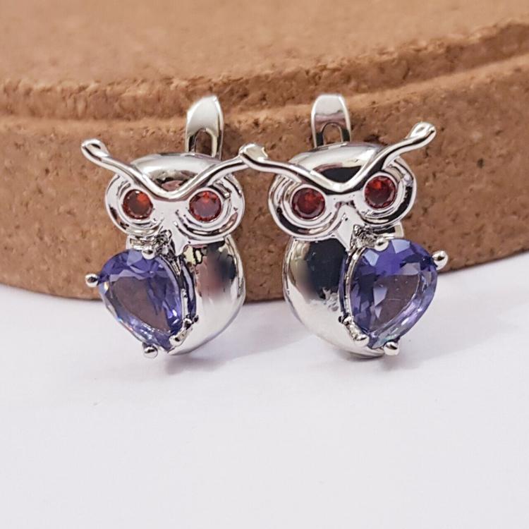 Такие оригинальные серьги наиболее популярны среди молодежи, которая любит носить изделия нестандартного дизайна. С такими модными и яркими серёжками в виде сов Ваш образ точно не останется без внимания! Чтобы Ваши украшения оставались в целости и сохранности нужно знать основные принципы ухода за бижутерией: беречь от воды, хранить отдельно, снимать во время занятий спортом, защищать от высоких температур, надевать в последнюю очередь, правильно чистить, снимать на ночь. Материал: металл, стекло, фианиты. Размер: 1,5*1,1 см. Замок: английский. Вес: 5 гр.