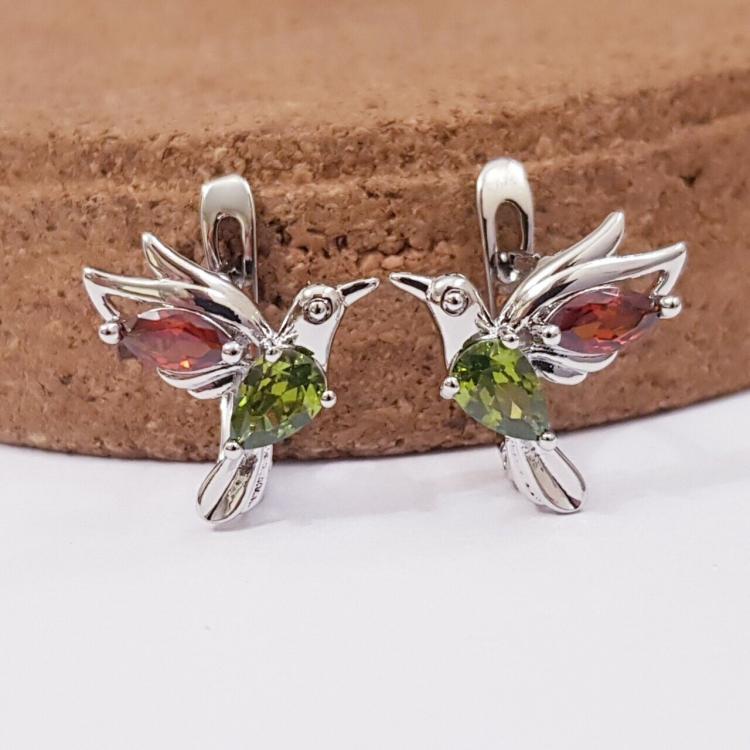 Такие оригинальные серьги наиболее популярны среди молодежи, которая любит носить изделия нестандартного дизайна. С такими модными и яркими серёжками в виде птичек Ваш образ точно не останется без внимания! Чтобы Ваши украшения оставались в целости и сохранности нужно знать основные принципы ухода за бижутерией: беречь от воды, хранить отдельно, снимать во время занятий спортом, защищать от высоких температур, надевать в последнюю очередь, правильно чистить, снимать на ночь. Материал: металл, фианиты. Размер: 1,5*1,3 см. Замок: английский. Вес: 3 гр.