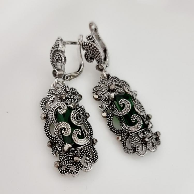 Размер: 2,3*1 см. Замок:английский. Материал: бижутерный сплав, ювелирное стекло. Вес: 7гр