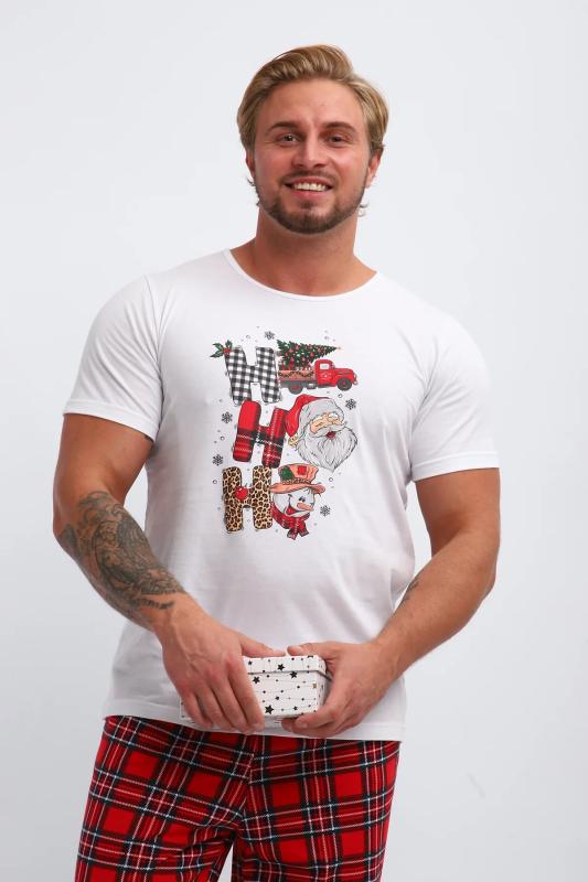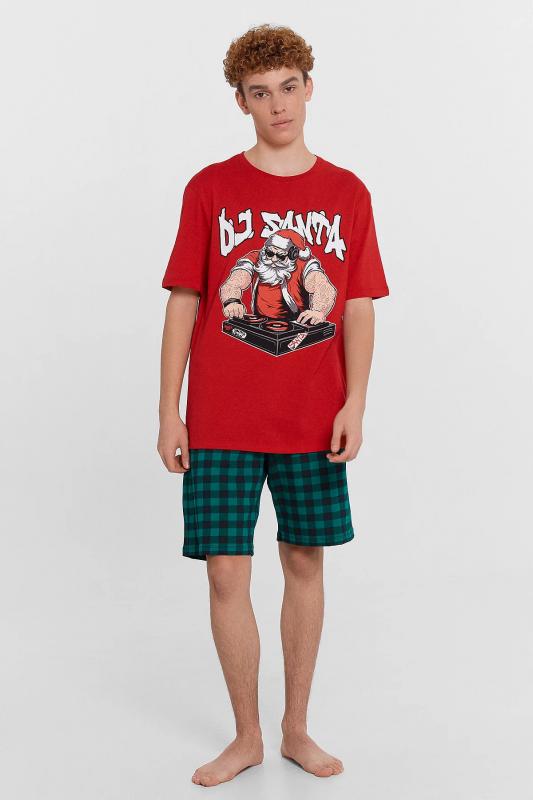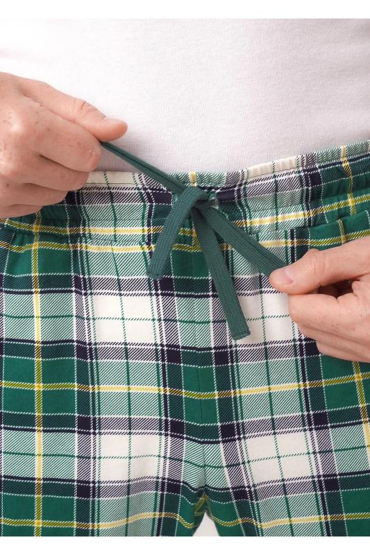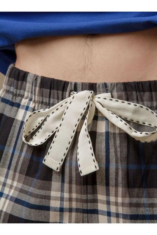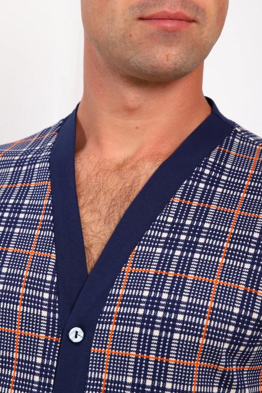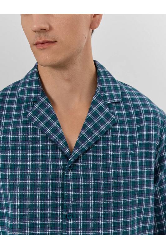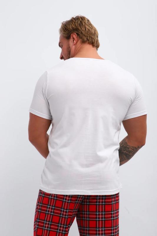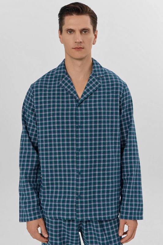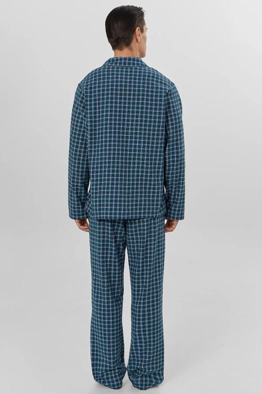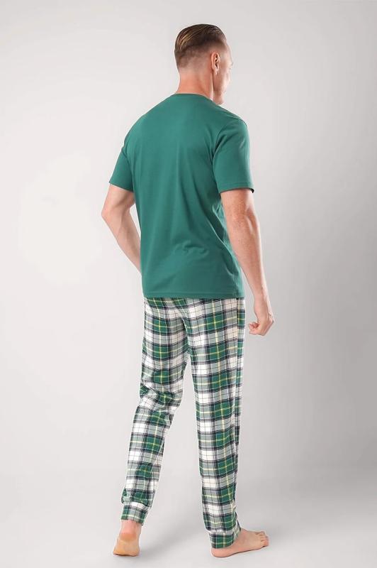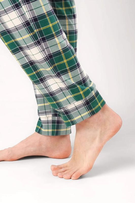 Мужская пижама 4047PBC бренда Indefini, изготовленная из хлопка, состоит из футболки и брюк. Футболка свободного кроя с короткими рукавами и круглым вырезом. Брюки прямого кроя с мягкой эластичной резинкой и регулирующим поясом обеспечивают оптимальную посадку. Брюки украшены клетчатым принтом.
