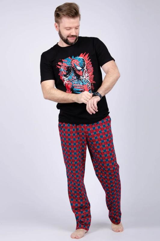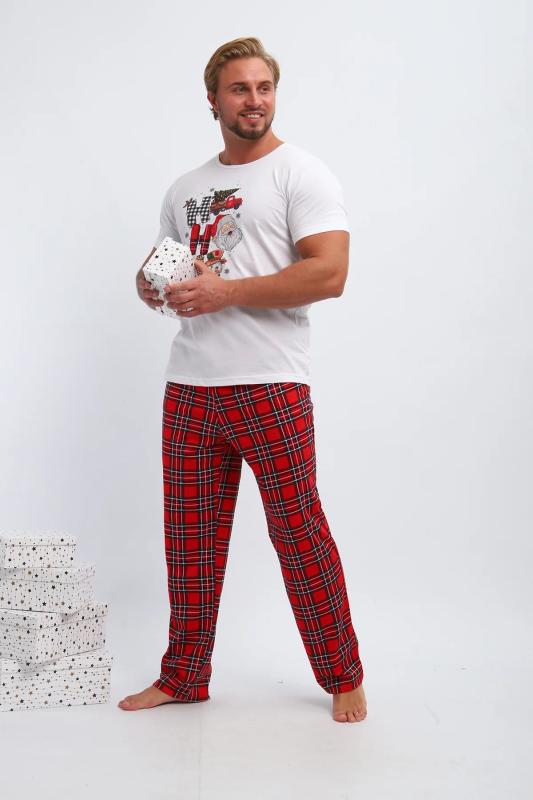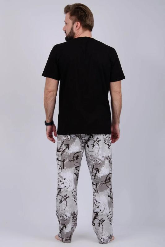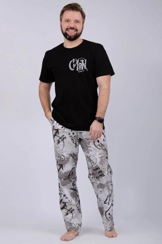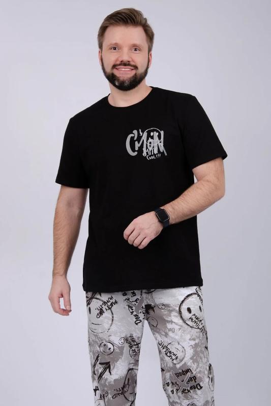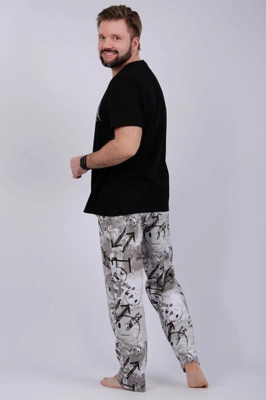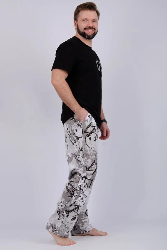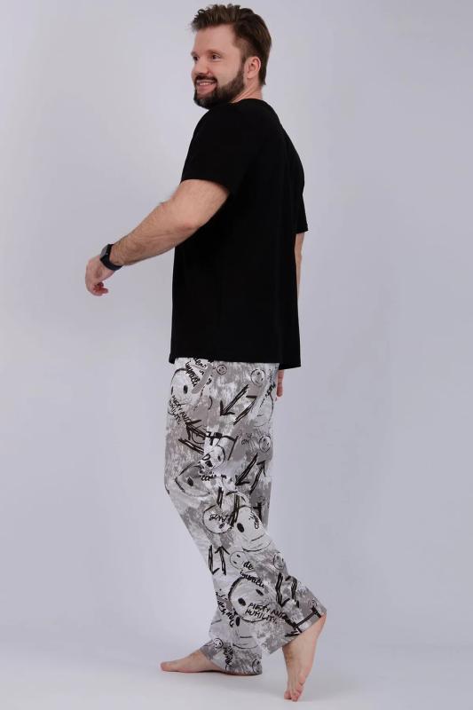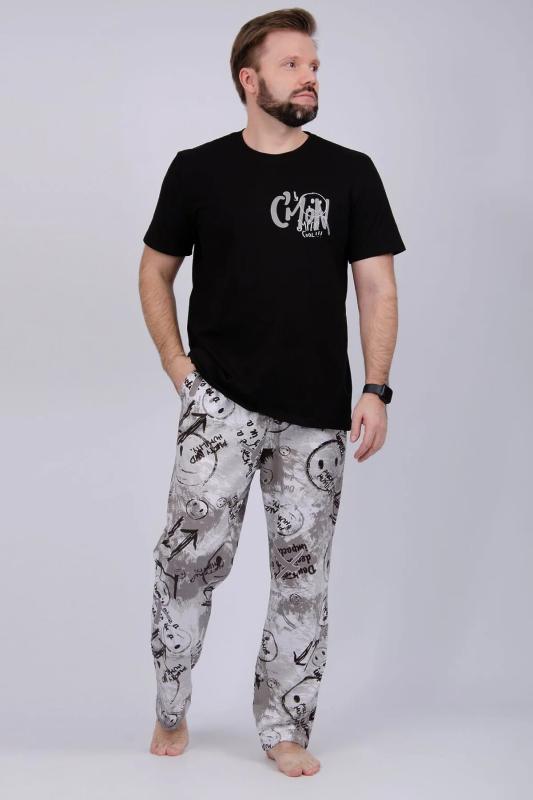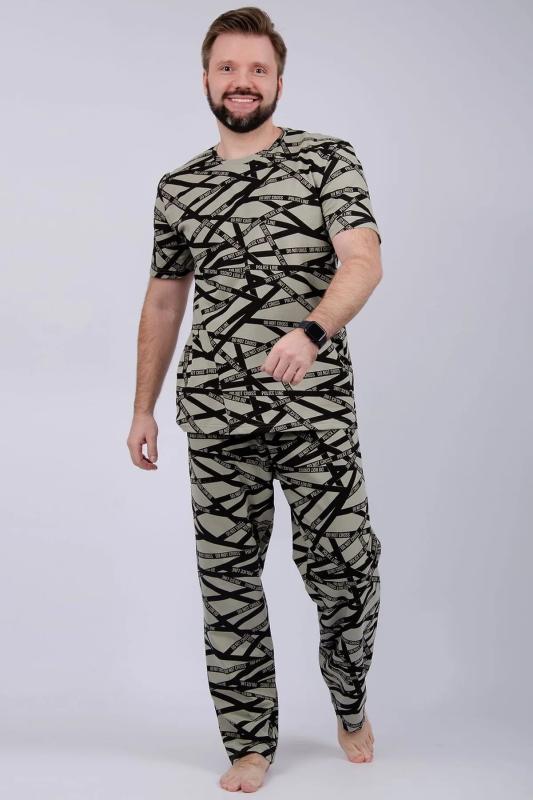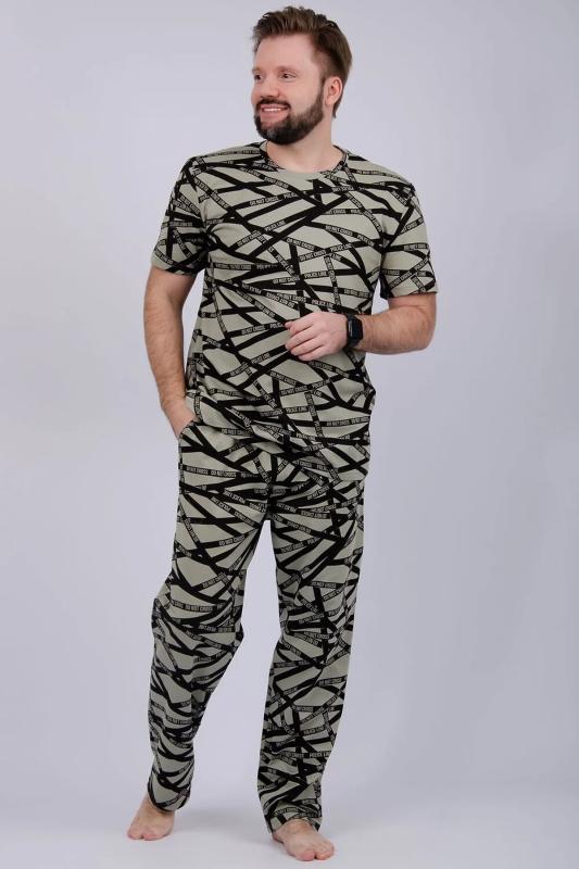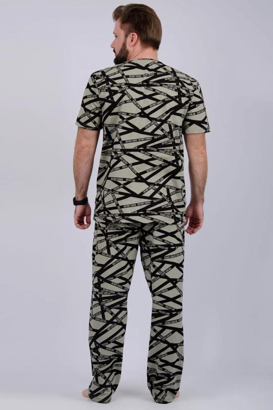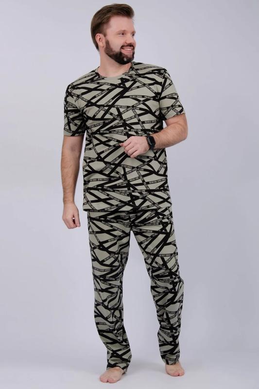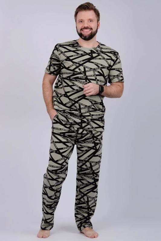 Пижама мужская: футболка прямого кроя с короткими рукавами с принтом на полочке, брюки прямые, с карманами в боковых швах.