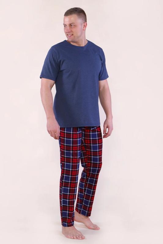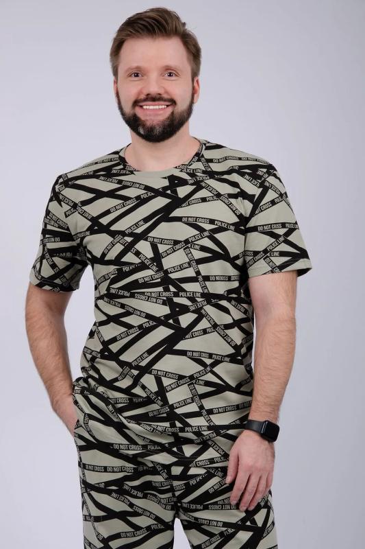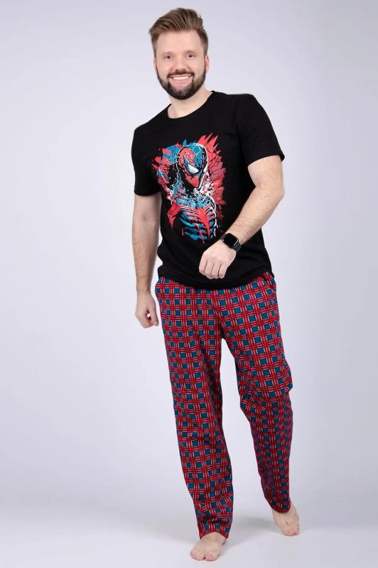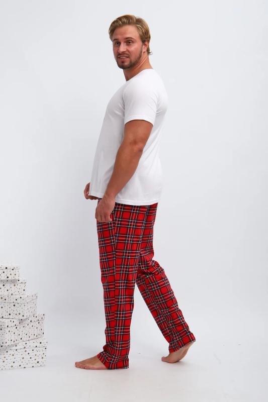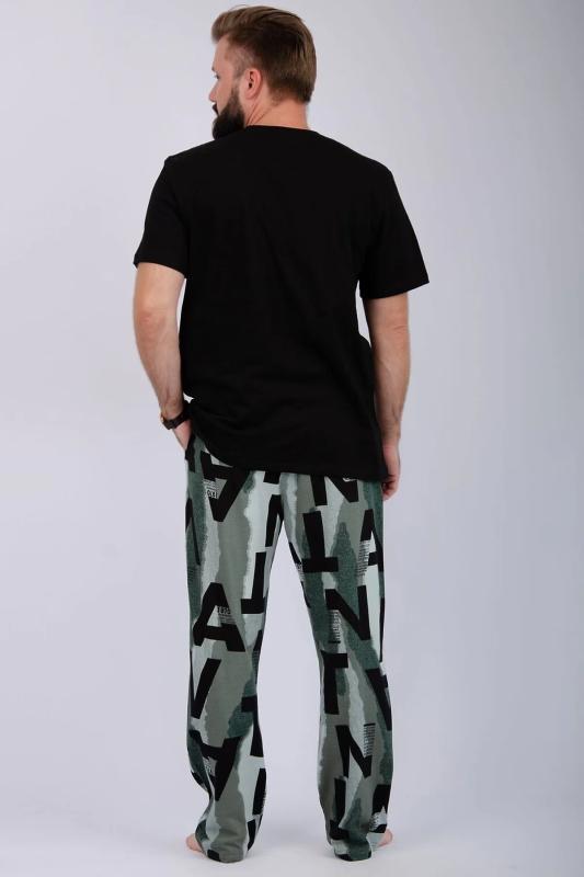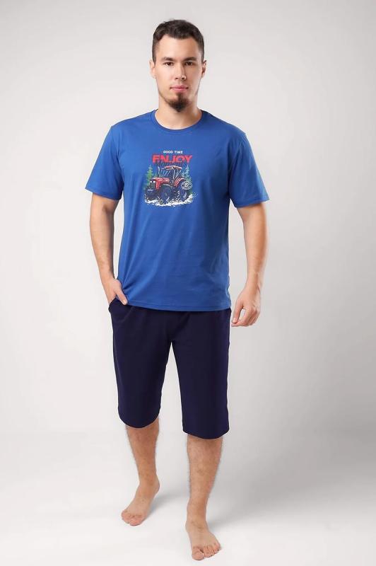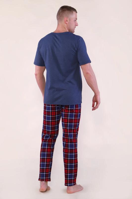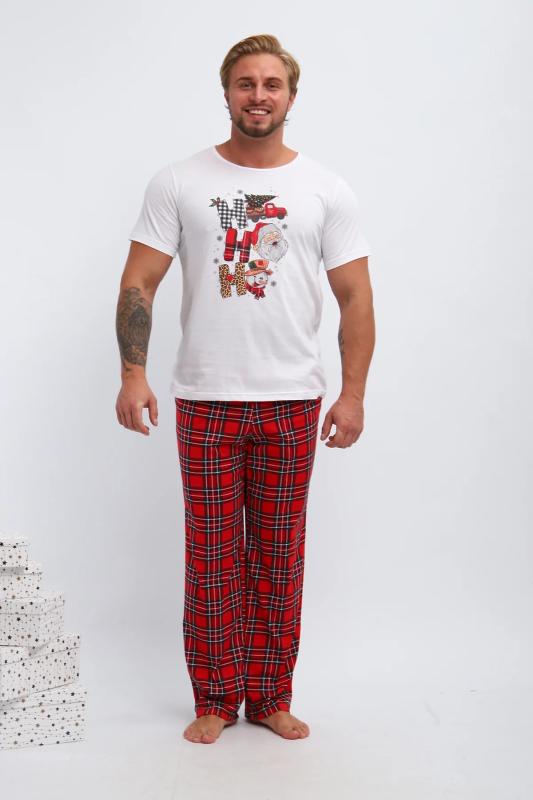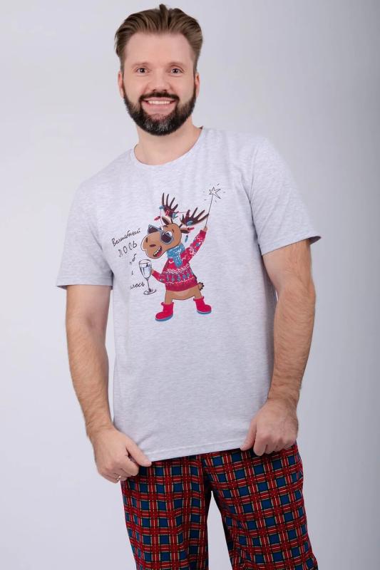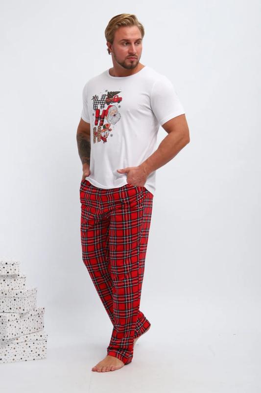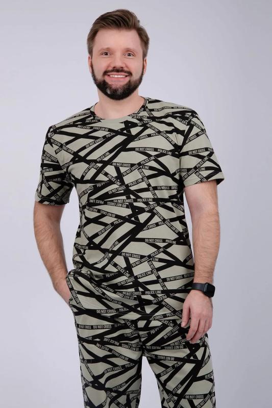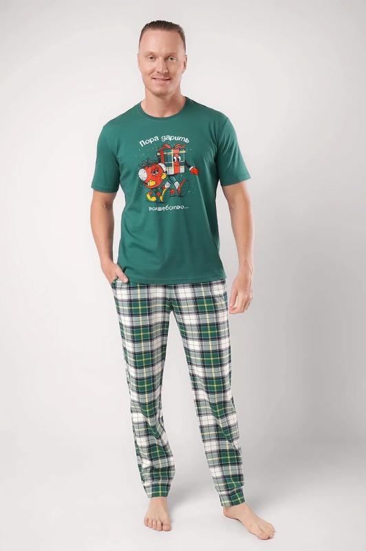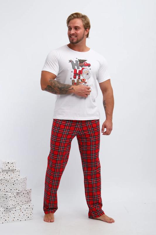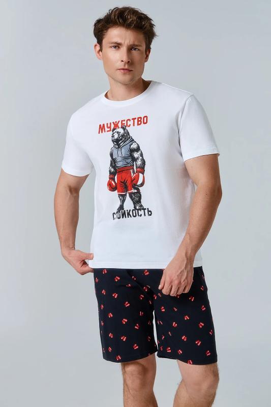 Пижама мужская: футболка прямого кроя с короткими рукавами с принтом на полочке, брюки прямые, с карманами в боковых швах.