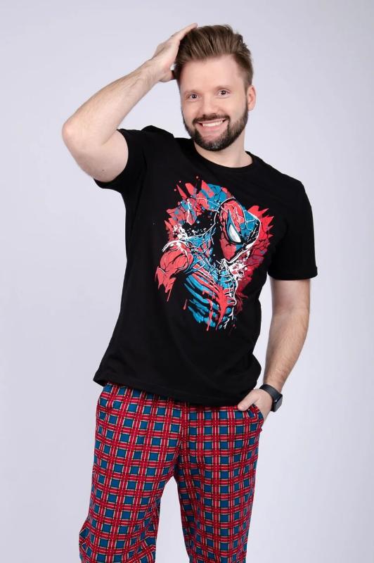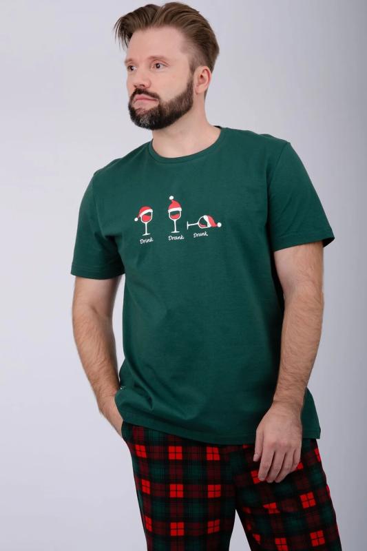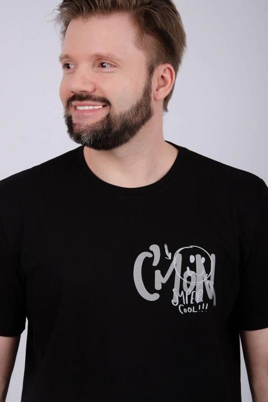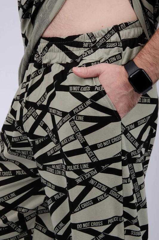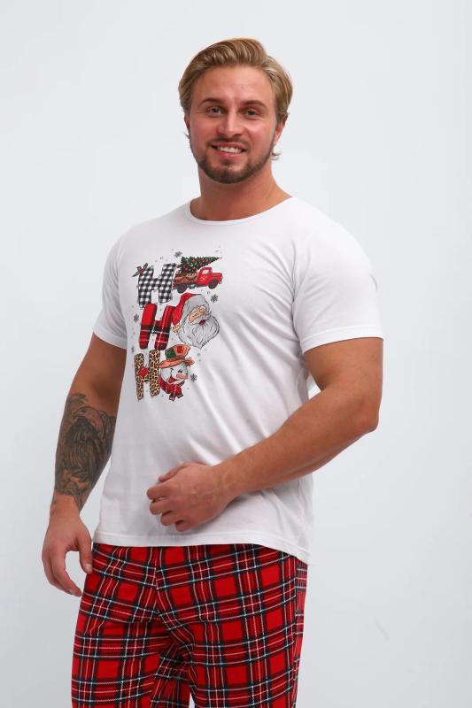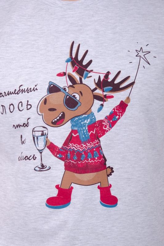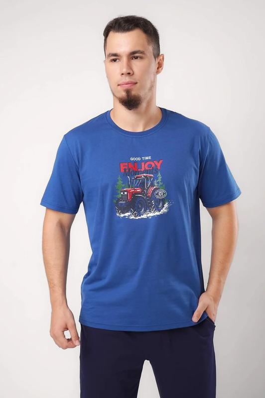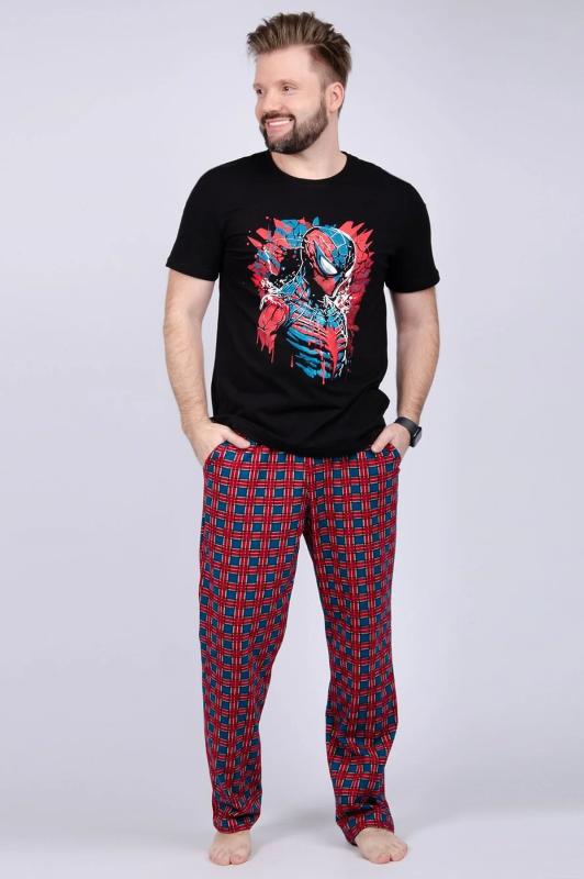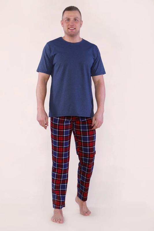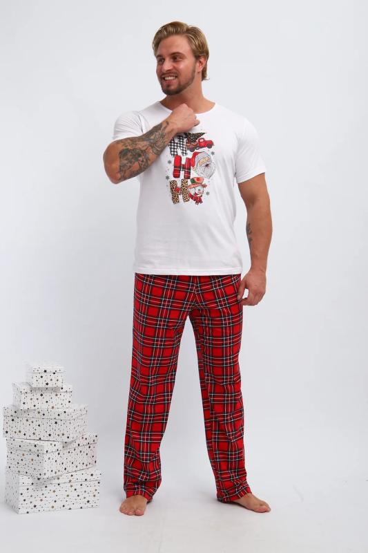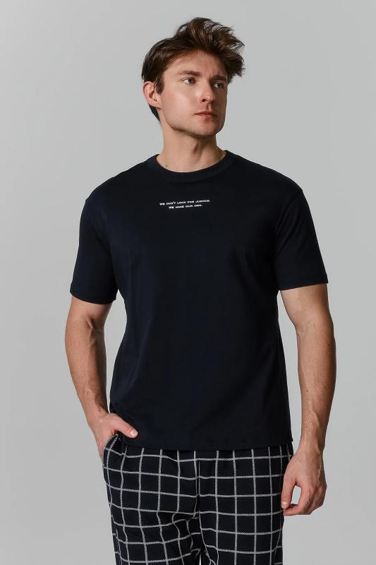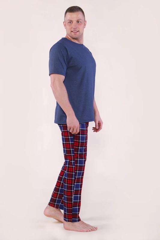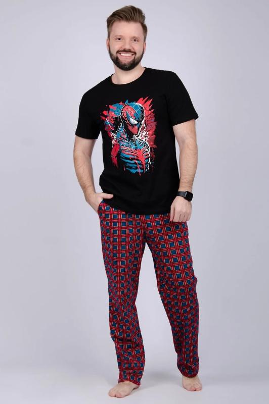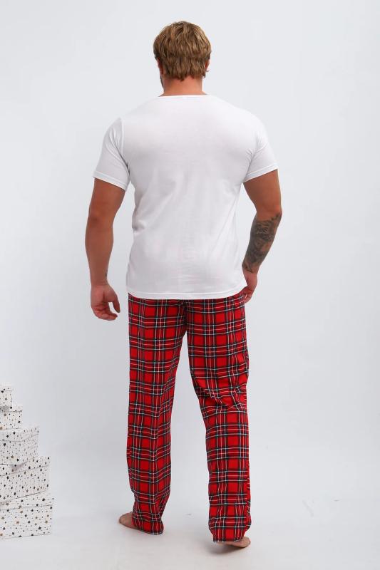 Пижама мужская: футболка прямого кроя с короткими рукавами с принтом на полочке, брюки прямые, с карманами в боковых швах.