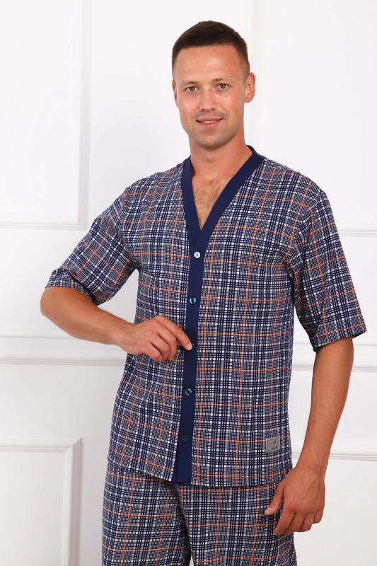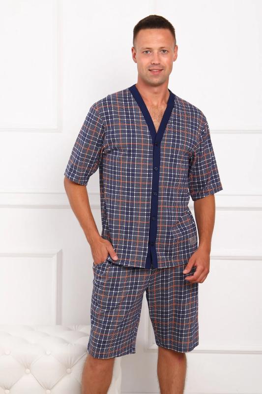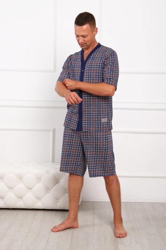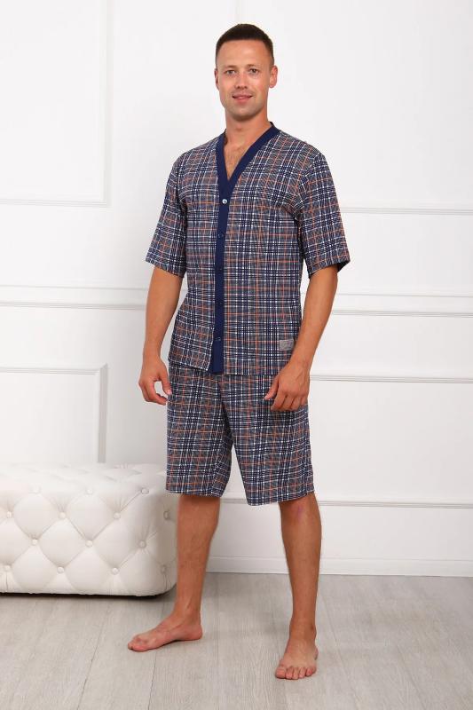Пижама мужская, классическая, в клетку. Очень комфортный и мягкий трикотаж, удобный крой. Шорты на эластичном поясе, с двумя боковыми карманами. 100% хлопок.