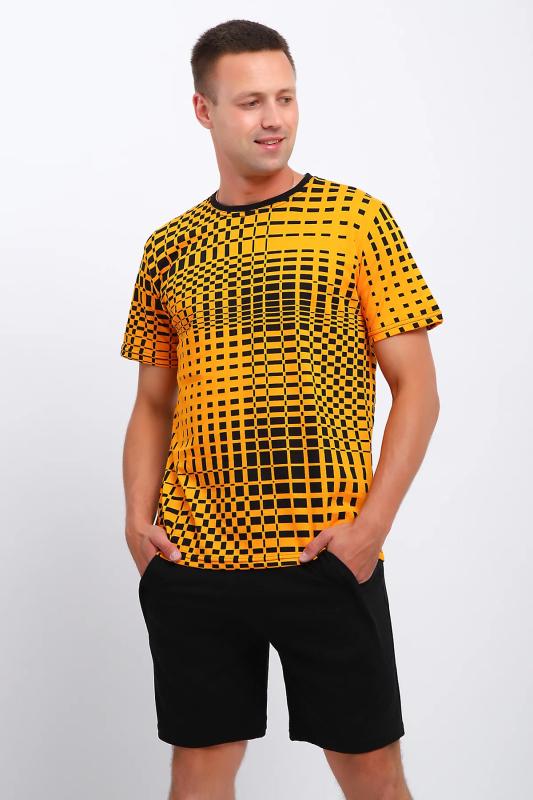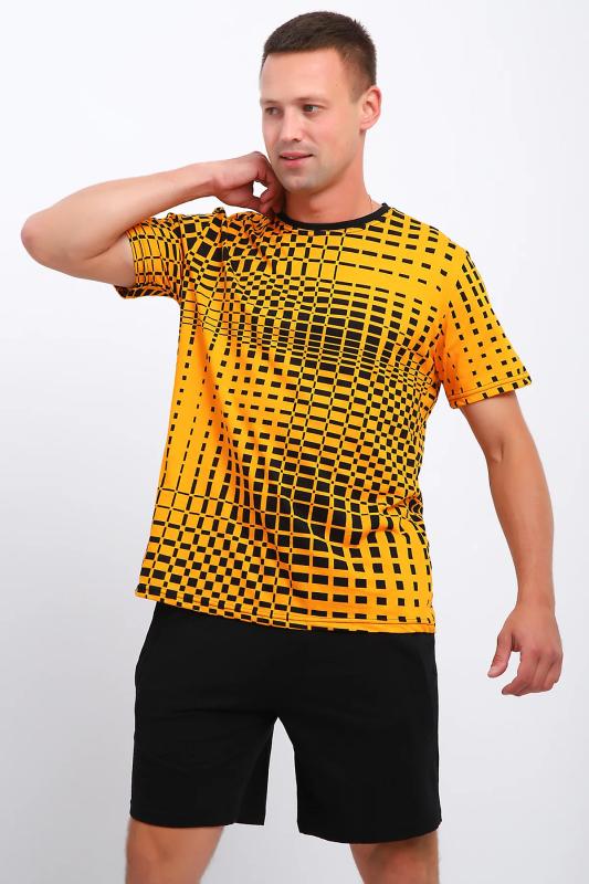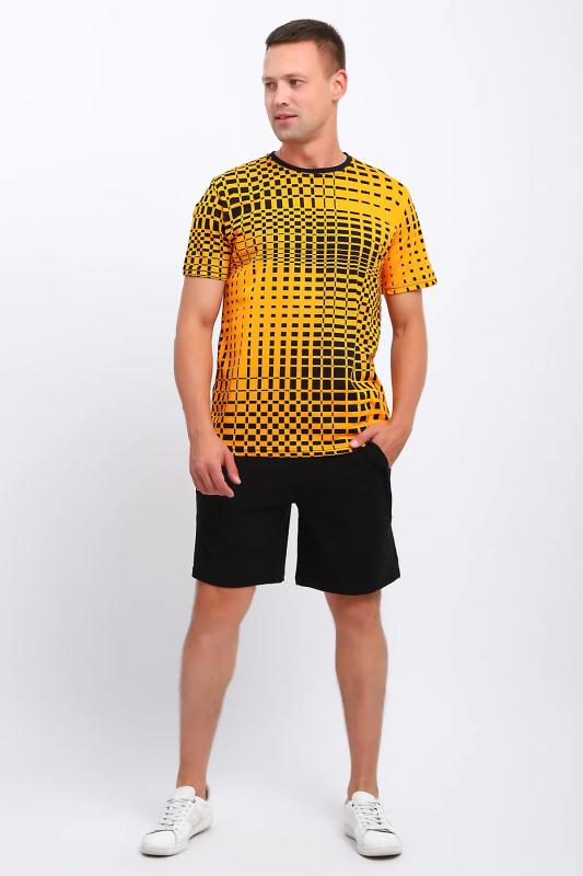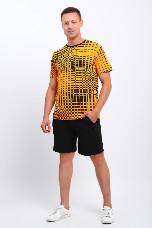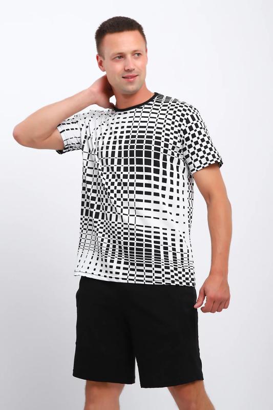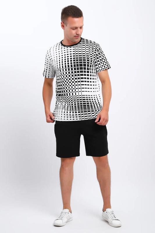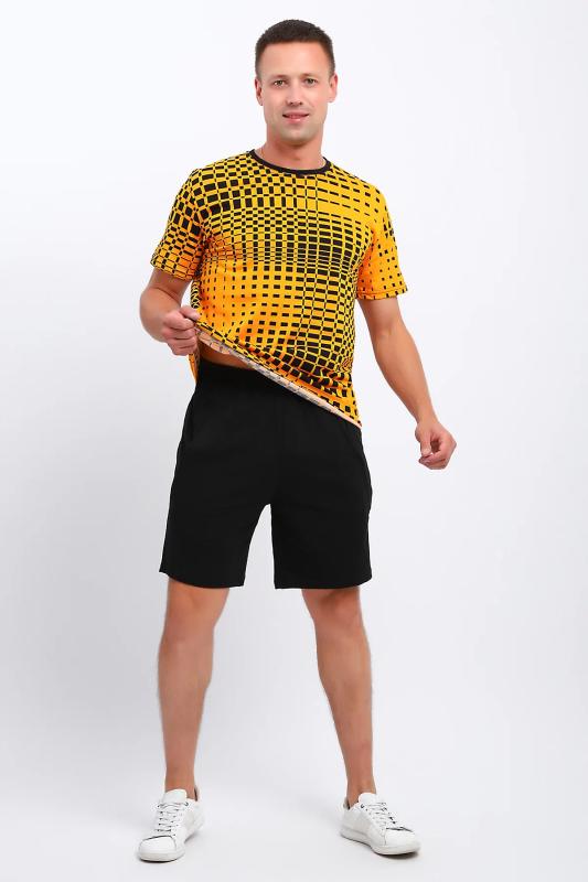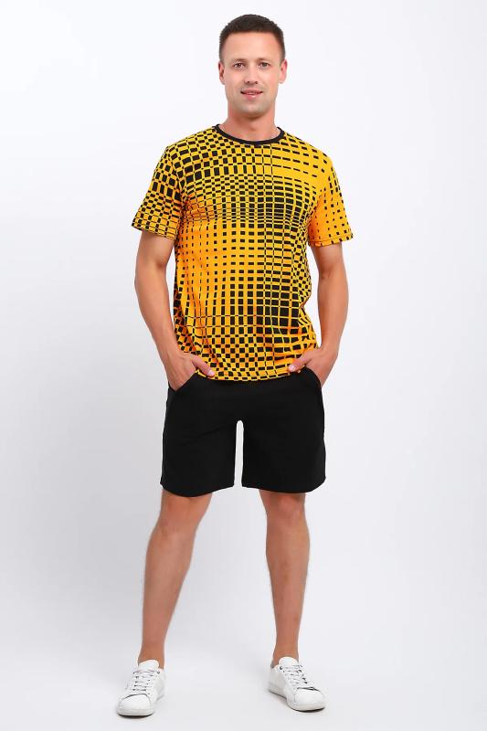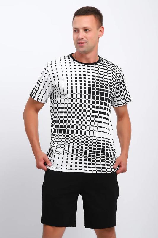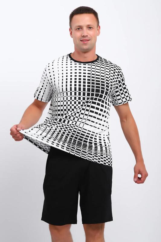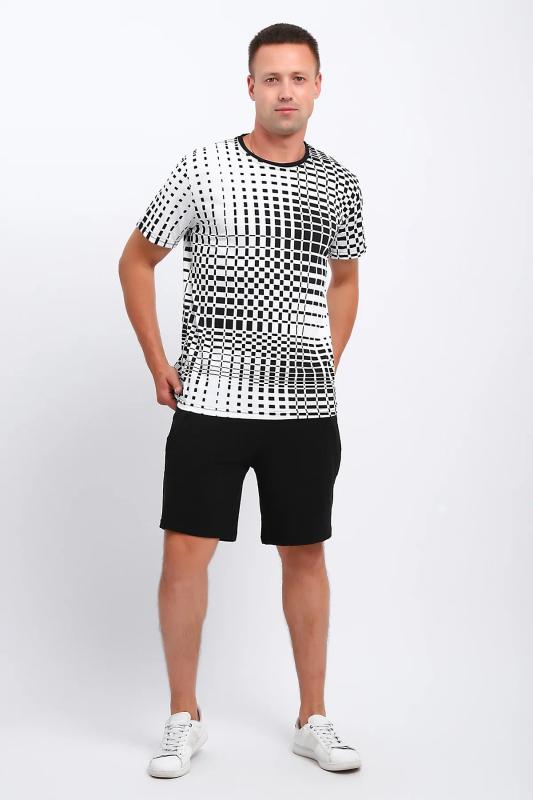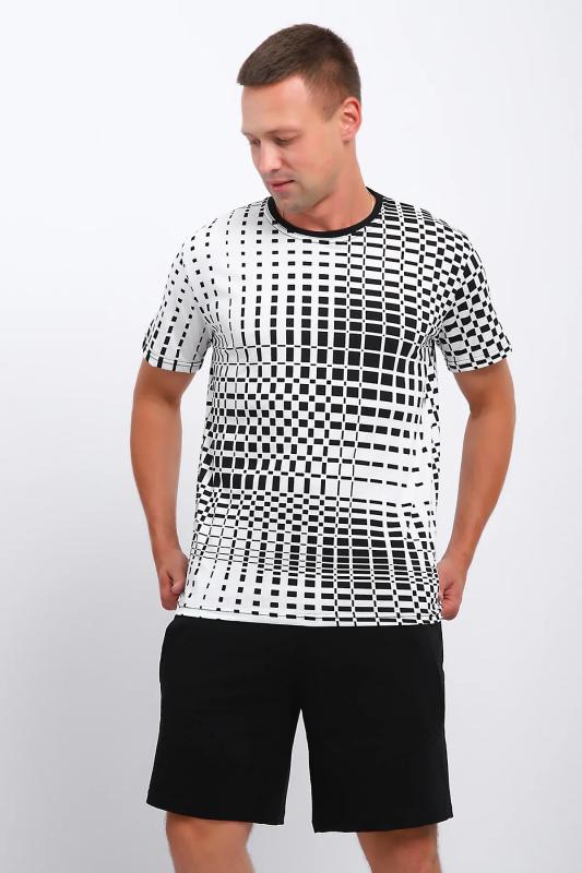 Набор мужской для дома состоящий из футболки и шорт. Футболка из однотонной кулирной глади с круглым вырезом горловины, декоративным резом, коротким рукавом и стильным принтом. Шорты из футера на эластичном поясе с функциональными карманами и шнуром.