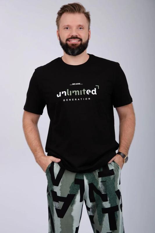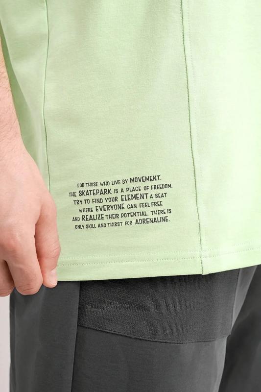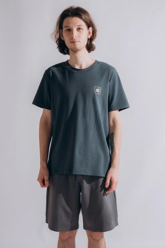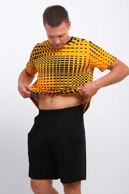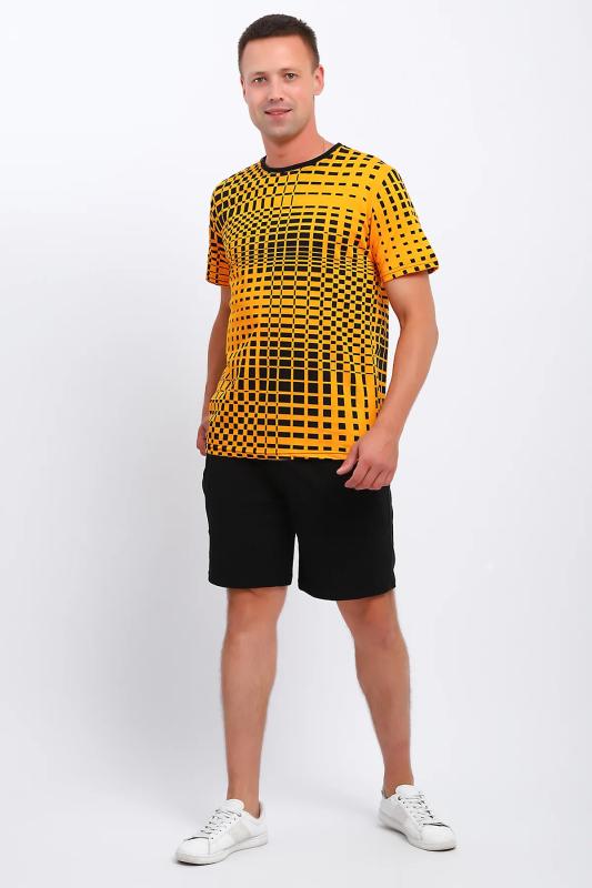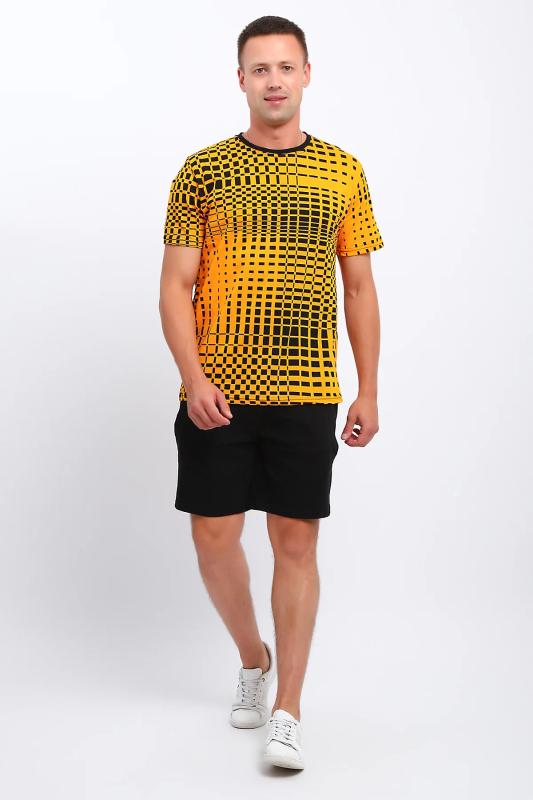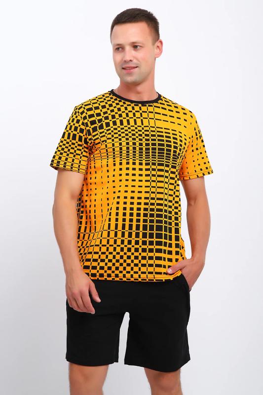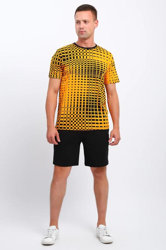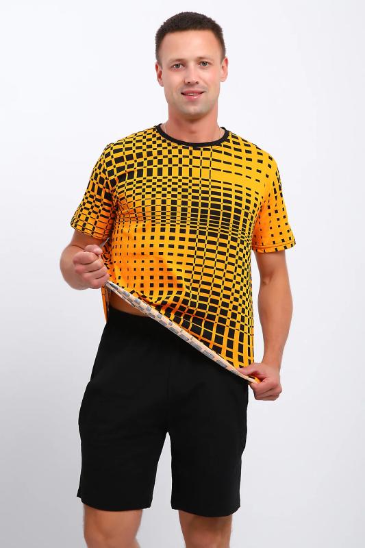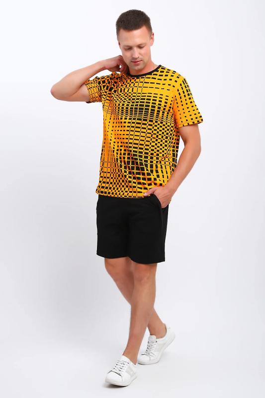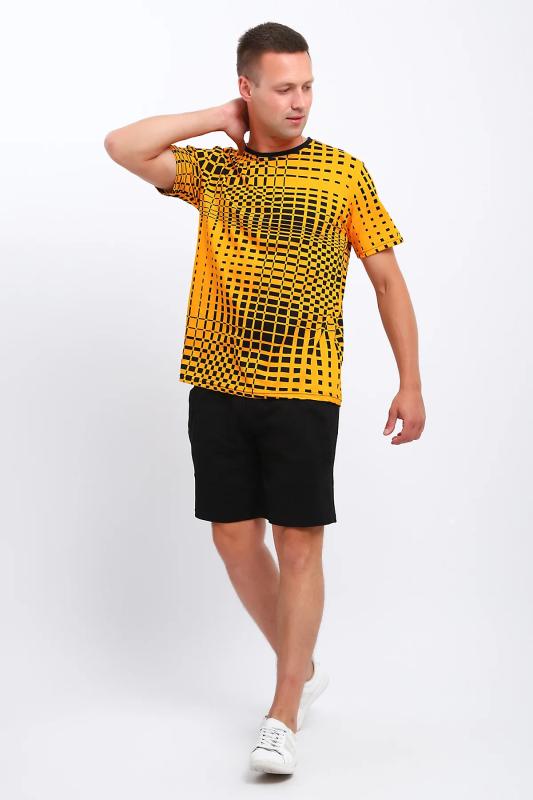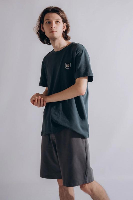 Набор мужской для дома состоящий из футболки и шорт. Футболка из однотонной кулирной глади с круглым вырезом горловины, декоративным резом, коротким рукавом и стильным принтом. Шорты из футера на эластичном поясе с функциональными карманами и шнуром.