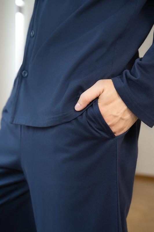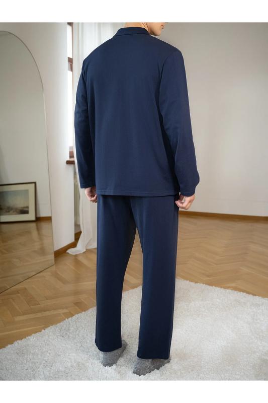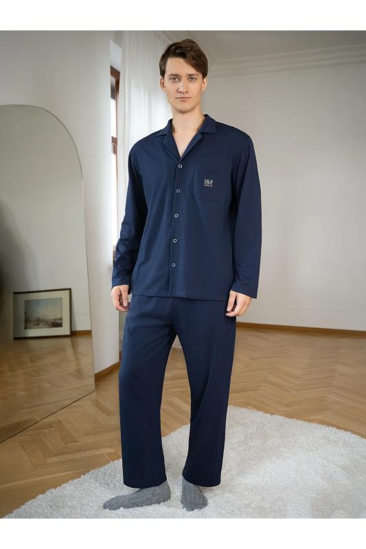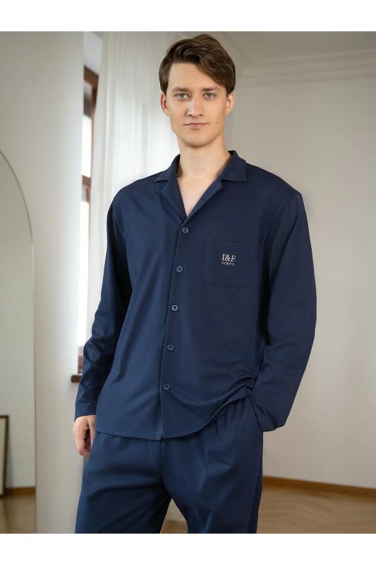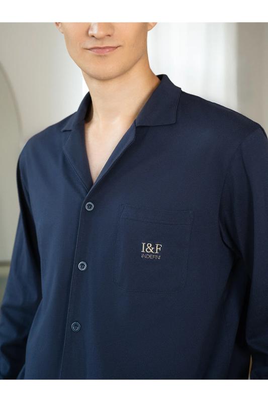 Мужская пижама Indefini выполнена из 100% хлопка в классическом темно-синем цвете. Комплект состоит из рубашки на пуговицах с длинным рукавом и нагрудным карманом, а также прямых брюк на мягкой эластичной резинке. Натуральный хлопок обеспечивает отличную воздухопроницаемость и комфорт в течение всей ночи. Свободный крой не сковывает движений, а лаконичный дизайн делает пижаму универсальным выбором для домашнего отдыха и сна. Идеальный вариант для тех, кто ценит комфорт, практичность и стиль.