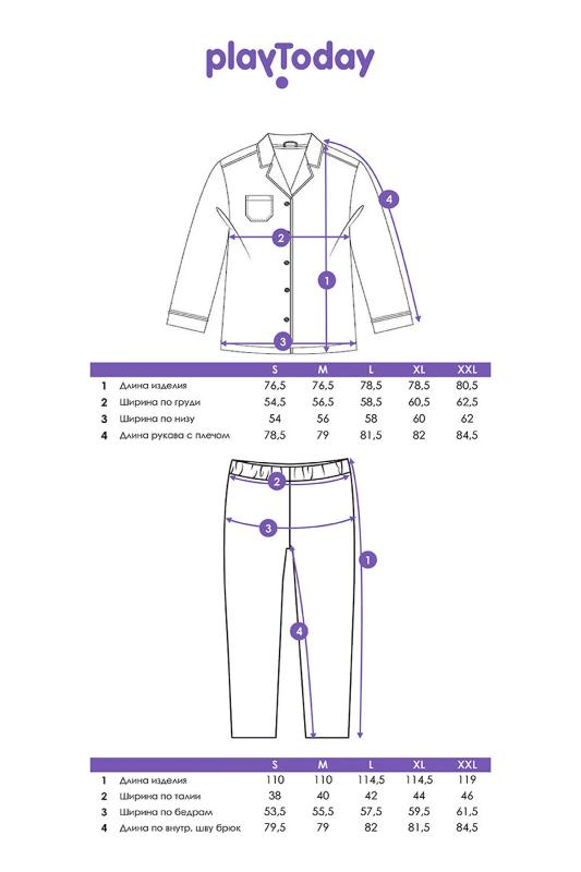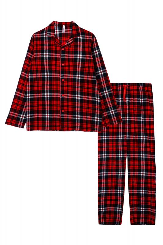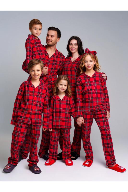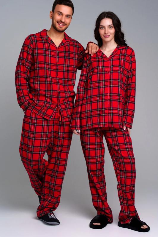 Пижама текстильная взрослых размеров: можно составить family look c детским вариантом пижамы аналогичного дизайна. 100% хлопок. Фланель - мягкая, приятная к телу ткань с небольшим начесом. Застежка на пуговицы. Карманы в брюках. Эластичный пояс с тесьмой позволяет легко надевать брюки и утягивать до комфортной посадки.