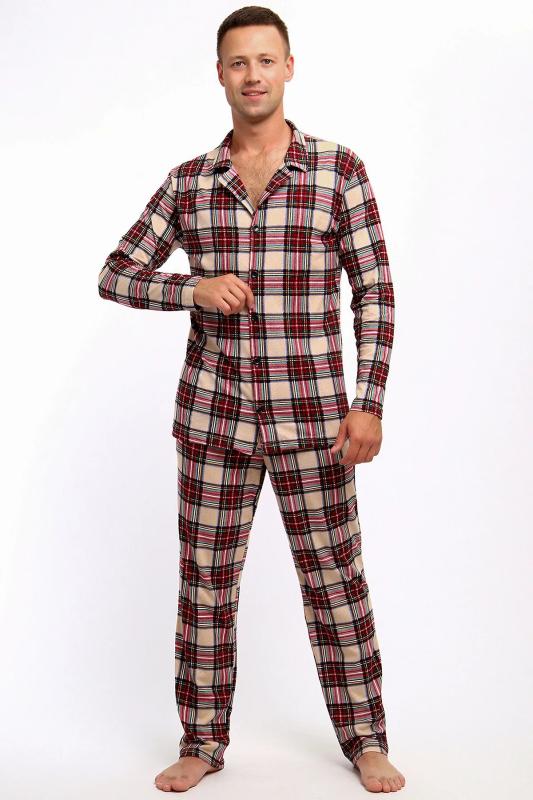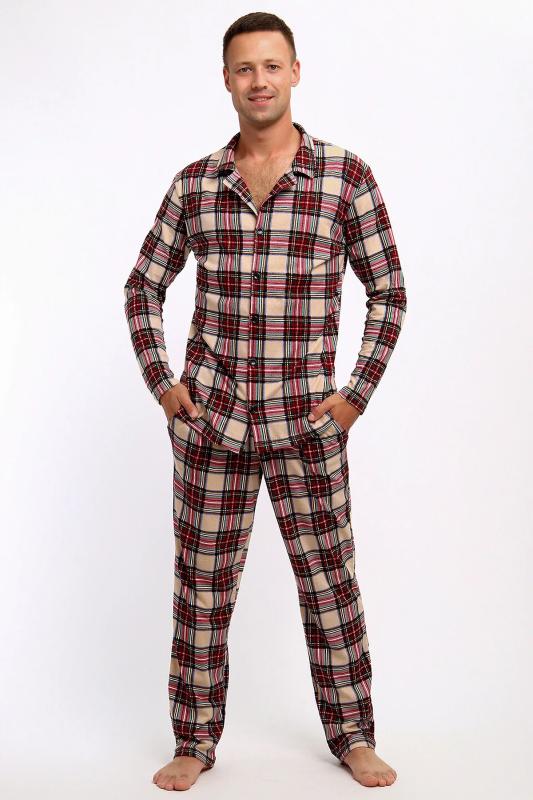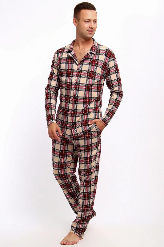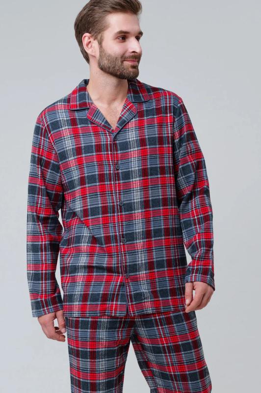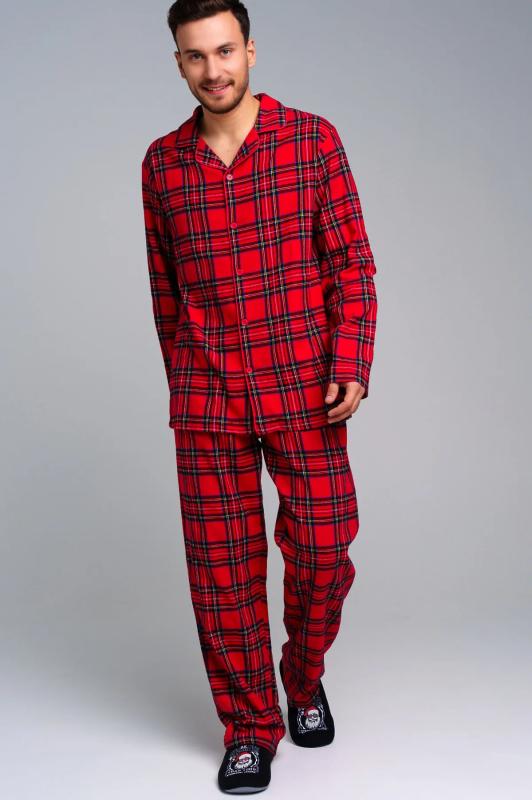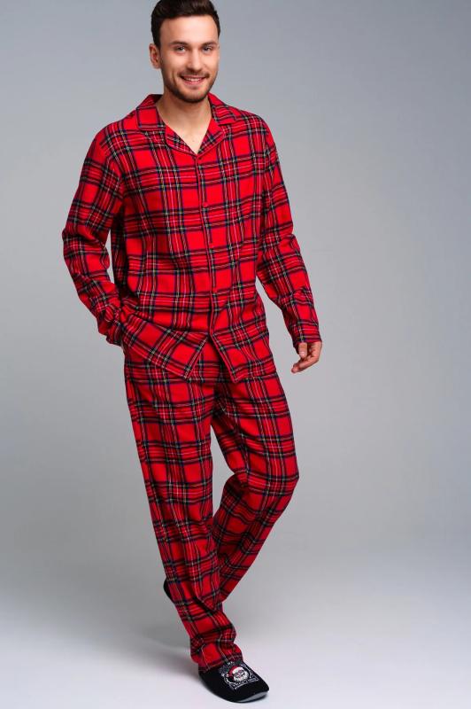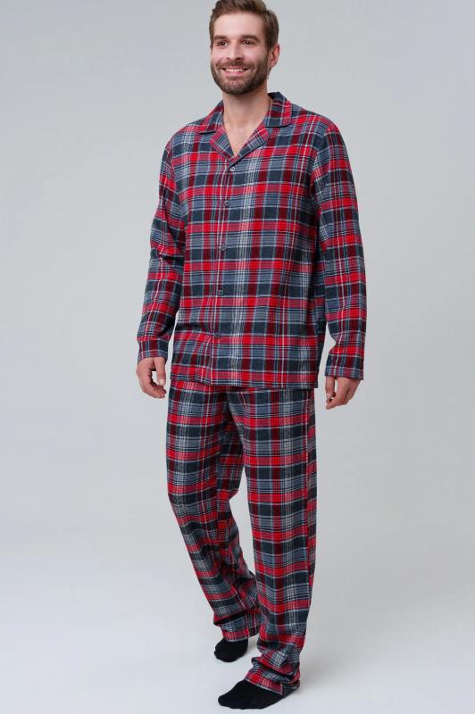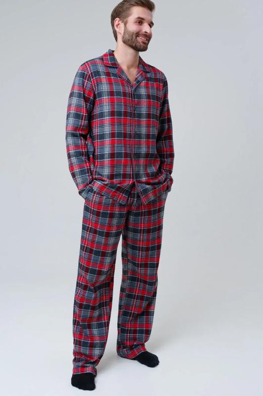 Мужская фланелевая пижама. 100% хлопок. Фланель - мягкая, приятная к телу ткань с небольшим начесом. Застежка на пуговицы. Карманы в брюках. Эластичный пояс с тесьмой позволяет легко надевать брюки и утягивать до комфортной посадки. Можно составить family look c детским вариантом пижамы аналогичного дизайна.