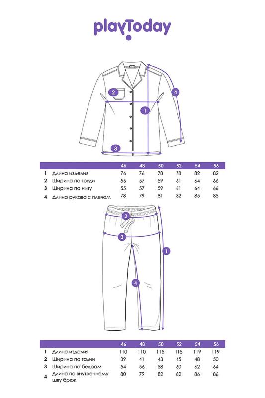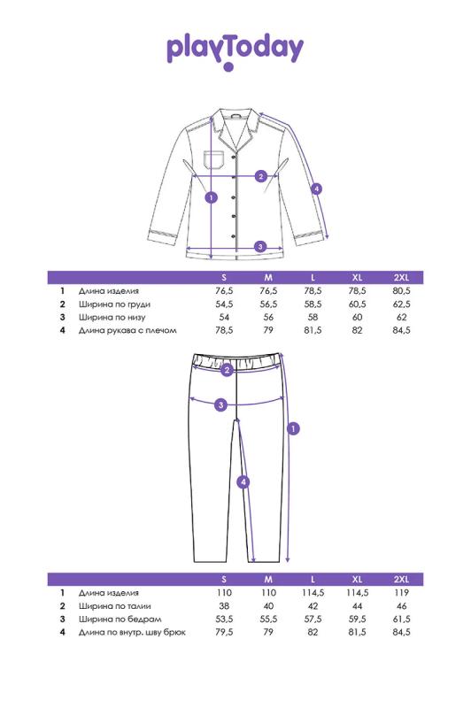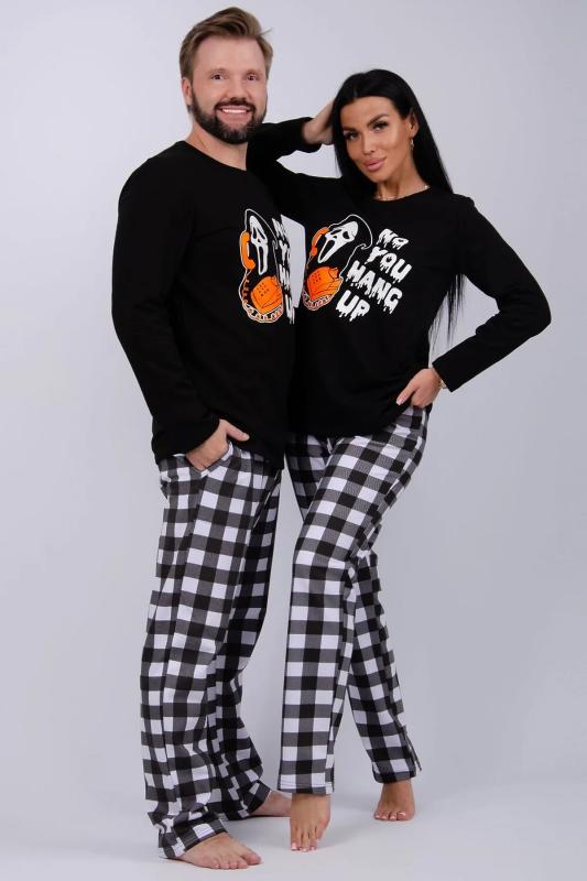 Пижама взрослых размеров: лонгслив, брюки из натурального хлопкового двойного трикотажа. 100% хлопок. Эластичные манжеты. Эластичный пояс брюк обеспечивает комфортную посадку. Можно составить family look с детским вариантом пижамы аналогичного дизайна.