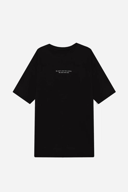 Комплект состоит из футболки и шорт. Комплект изготовлен из трикотажного полотна кулирка. Футболка свободная, oversize. Длина до середины бедер. Горловина округлой формы обработана обтачкой из основного полотна. Шов втачивания обтачки отстрочен декоративной строчкой.Плечо спущено. Рукава втачные короткие. Низ футболки обработан швом вподгибку. Шорты свободного силуэта. Длиной до колен. Пояс отрезной с эластичной тесьмой внутри.На деталях переда карманы с отрезным бочком. Нижние срезы шорт обработаны швом вподгибку.
