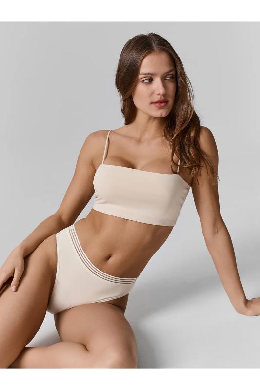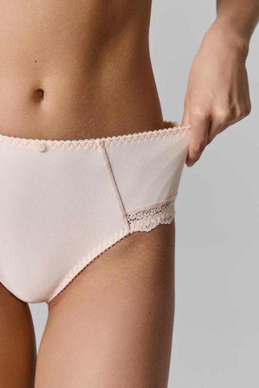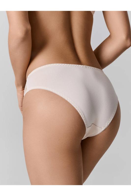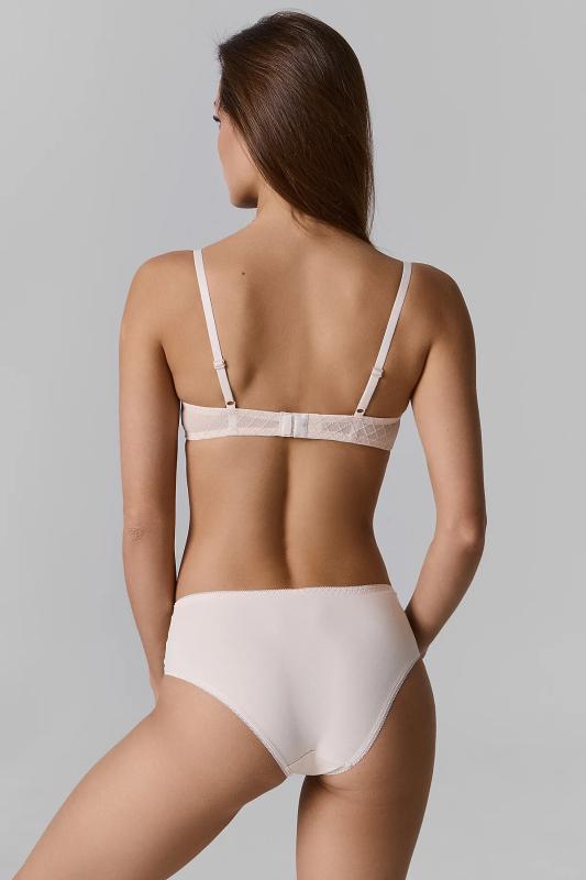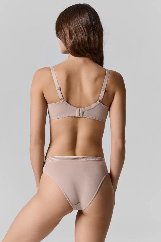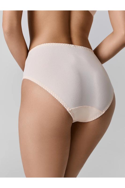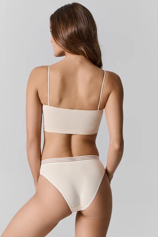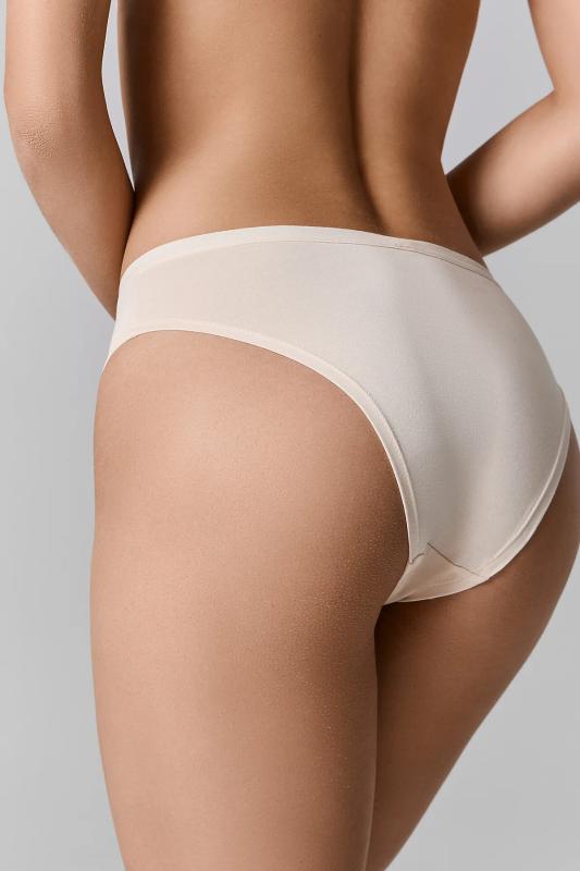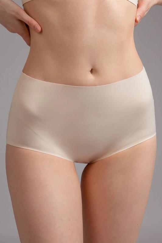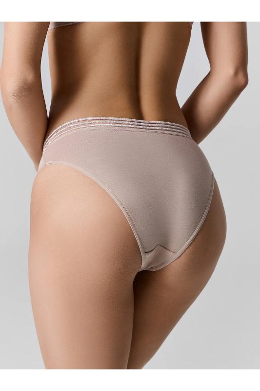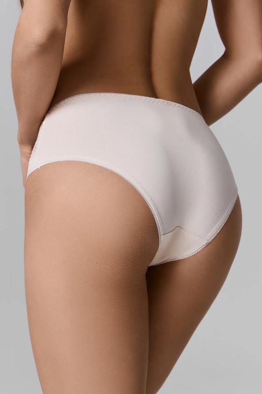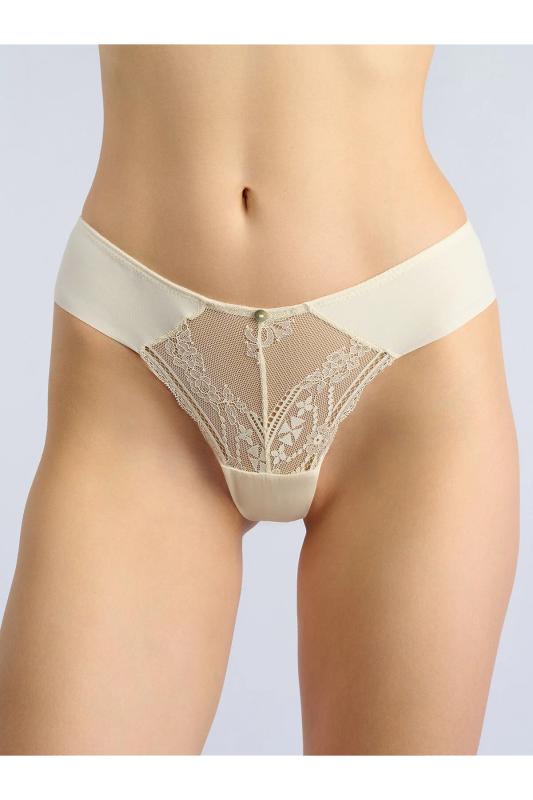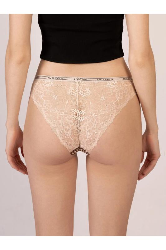 Трусы слипы женские 1251LUS бренда Indefini изготовлены из полиамида с добавлением эластана. Выполнены в бежевом цвете. Трусы средней посадки держатся на талии мягкой и плотной резинкой. На внутренней стороне трусов имеется хлопковая ластовица. В передней части трусов расположена изящная кружевная вставка.