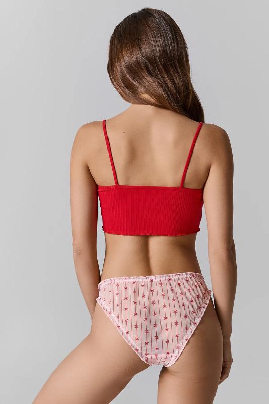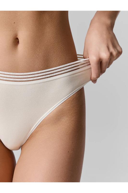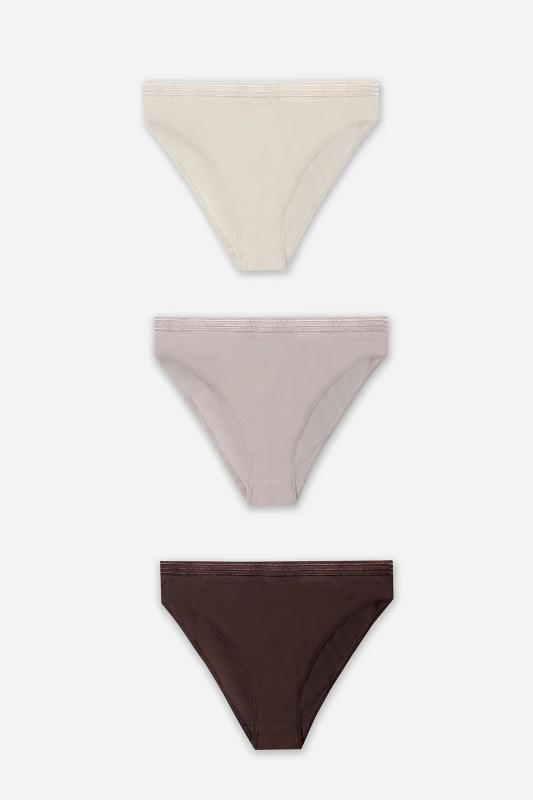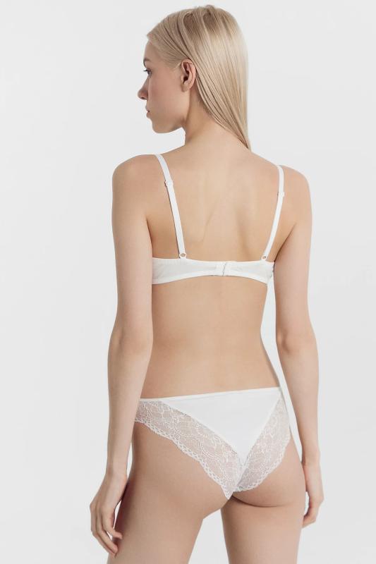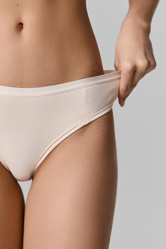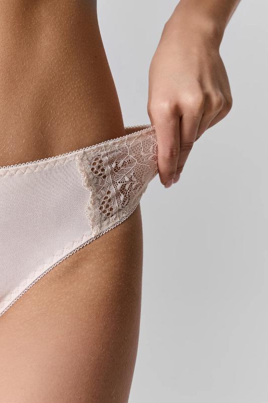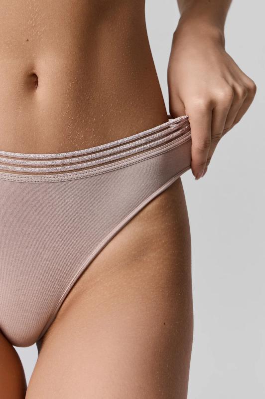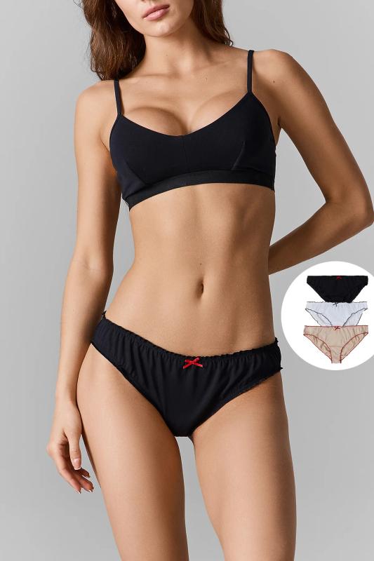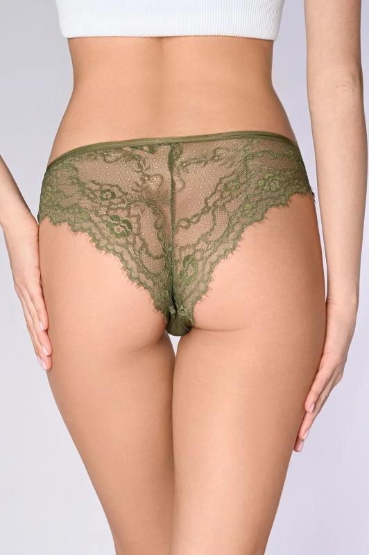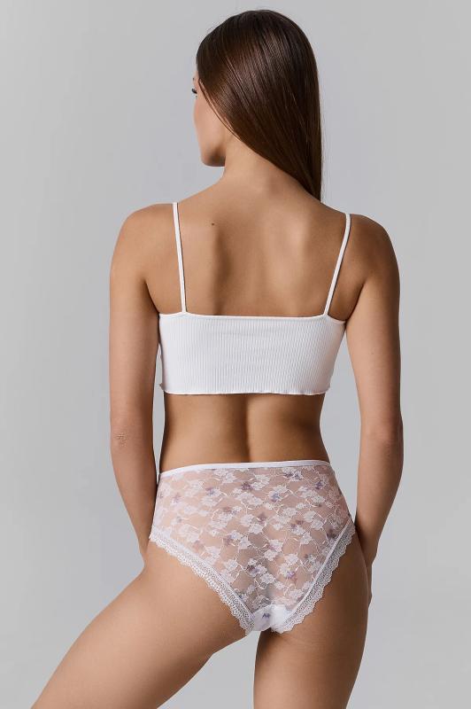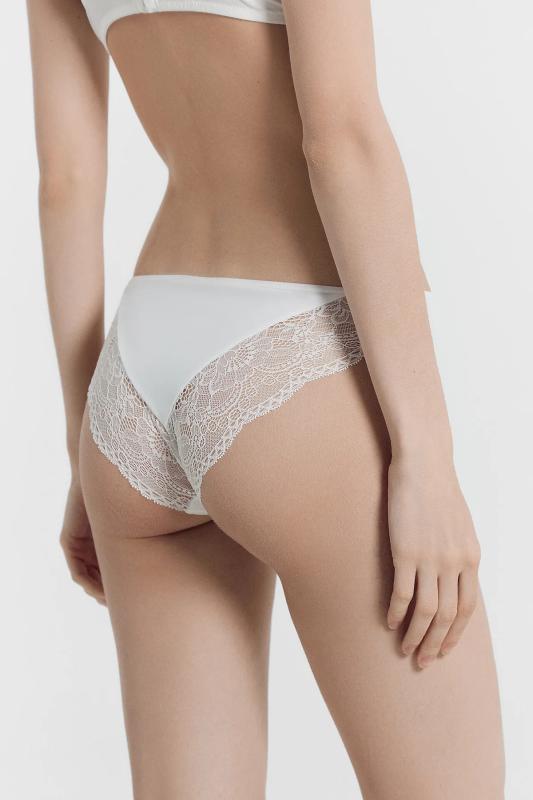 Изящные трусики-бразилиана — воплощение комфорта и утончённого стиля. Выполненные из эластичного кружева и мягкого кулирного полотна, они обеспечивают идеальную посадку благодаря средней высоте талии и V-образному силуэту. Передняя часть выполнена из кружева, добавляющего женственность, а задняя деталь из гладкого кулирного полотна со средним швом для дополнительного комфорта. Ластовица из натурального материала и аккуратная обработка нижних срезов швом вподгибку завершают этот элегантный образ.