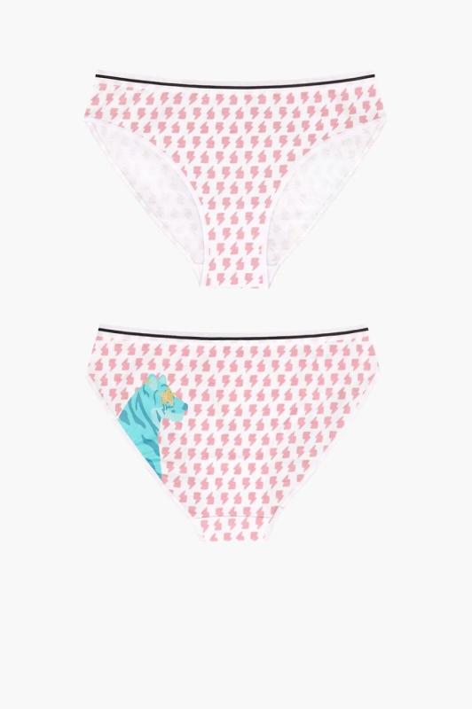 объединяют комфорт и выразительный стиль. Натуральный хлопок обеспечивает хорошее впитывание влаги и свободную циркуляцию воздуха, создавая комфортные условия для кожи. Мягкая резинка гарантирует удобную посадку без лишнего давления, обеспечивая свободу движений. Анималистичный принт с изображением тигра добавляет модели энергичности и выразительности.