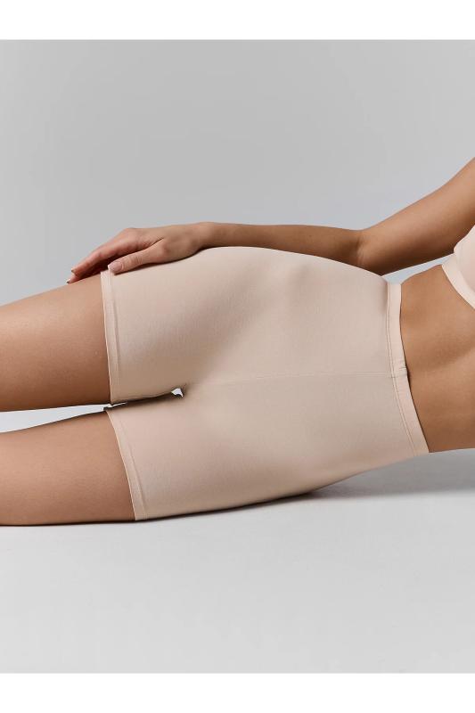 Трусы шорты, изготовлены из однотонного эластичного полиамидного полотна. Края изделия обработаны лазером, благодаря чему нити не распускаются. Модель не заметна под облегающей одеждой, прекрасно держит форму, но при этом отличается эластичностью.