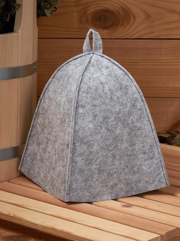 Шапка для бани сделана из серого войлока. Шапка является основным банным аксессуаром.Этот предмет защитит вашу голову от перегрева и сделает банные процедуры приятными.Наши шапки из войлока обладают рядом положительных свойств: они антибактериальны, не электризуются и не впитывают запахи!Наши банные принадлежности отлично пропускают воздух и тепло, из-за чего всегда поддерживают комфортную температуру и влажность.Шапка универсальна по размеру и оснащена удобным подвесом-петлей, что позволяет с легкостью просушить её после парения.