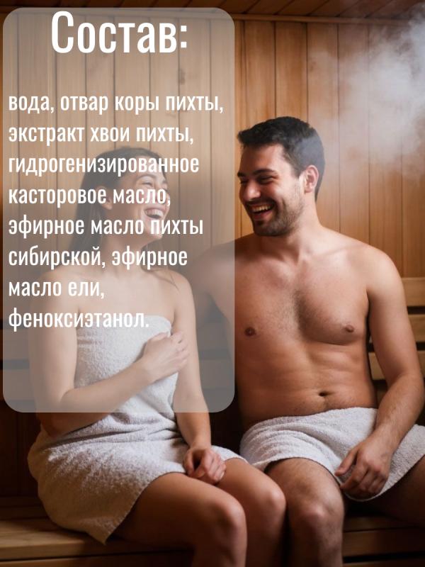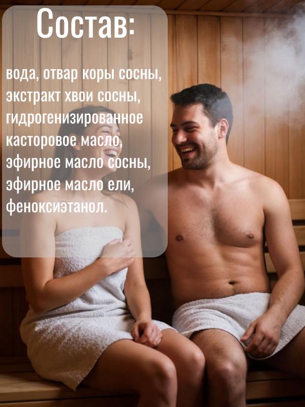 Основная составляющая ароматизатора эфирные масла хвойных пород. Они помогают бороться с простудными заболеваниями, обладают противовирусными, обезболивающими, общеукрепляющими свойствами и являются отличными антисептикамиНастой для бани и сауны с традиционным хвойно-древесным ароматом, бодрит и оказывает общеукрепляющие воздействие на организм. Настой предназначен для запаривания веников и подачи, в разбавленном с водой виде, на каменку и деревянные поверхности
