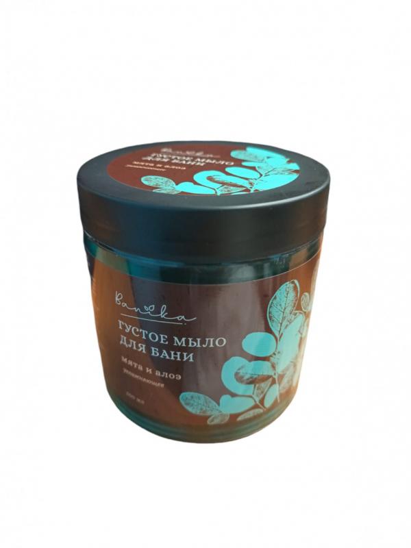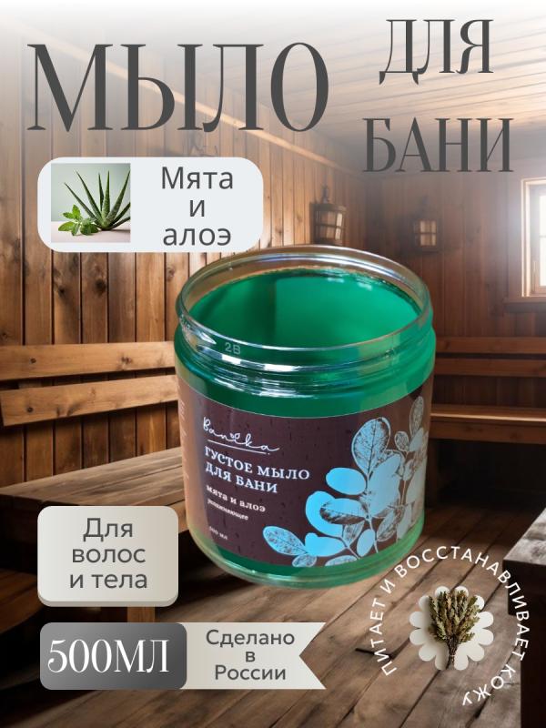 Густое мыло для бани Мята и Алоэ увлажняющее, для волос и тела.С алоэ вера, маслом перечной мяты и аллантоином.