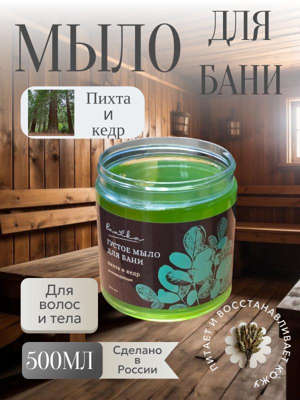 Густое мыло для бани Пихта и Кедр регенерирующее, для волос и тела.С алоэ вера, комплексом масел пихты и кедра и аллантоином.