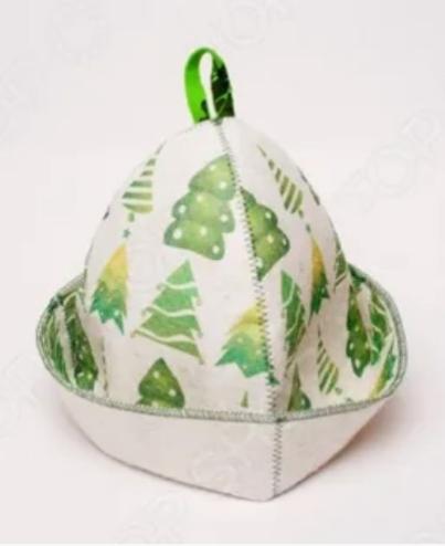 Шапка банная с принтом Елочки, войлок.Шапка из плотного войлока с термостойким принтом - яркий и креативный подарок к любому празднику, а также надежный способ защитить голову от перегревания.