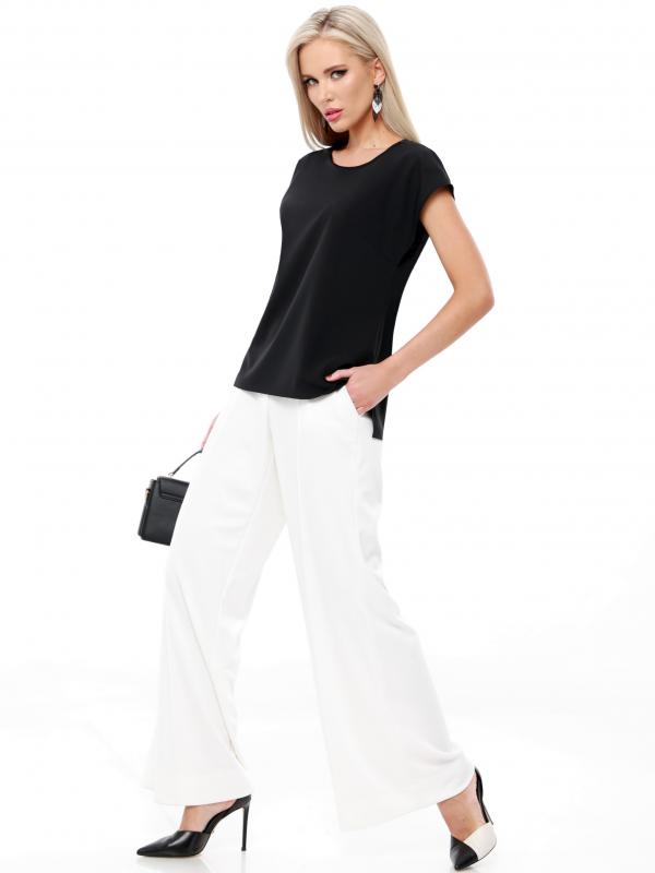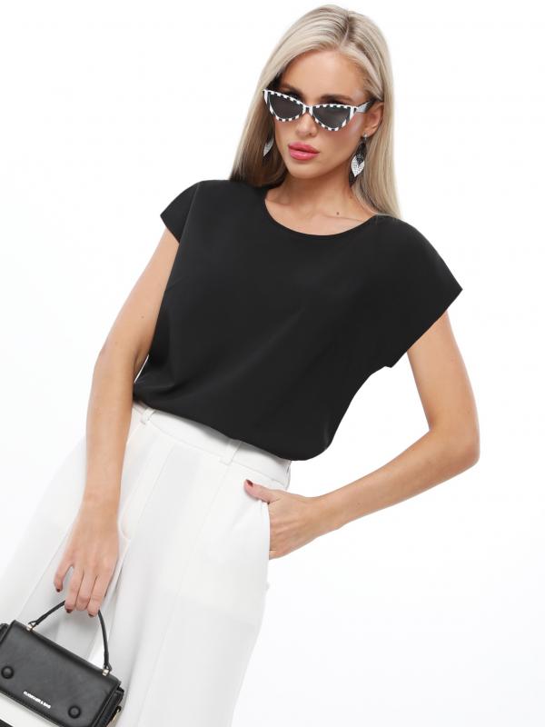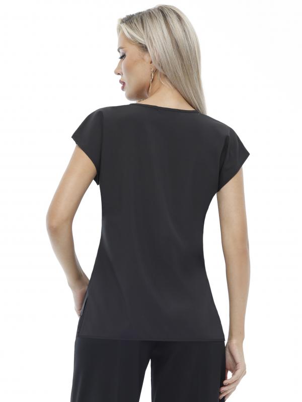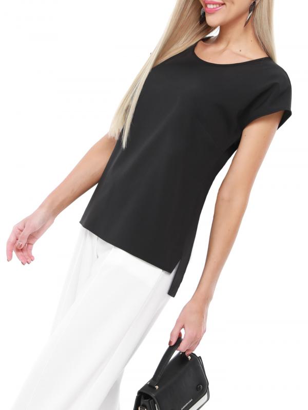 Утонченная блузка с коротким рукавом — базовая модель, которая с легкостью впишется в повседневные, деловые и вечерние образы. Прямой фасон с округлым вырезом, небольшими разрезами по бокам и слегка удлиненной спинкой прекрасно смотрится на женщинах любой комплекции и позволяет чувствовать себя комфортно. Короткие цельнокроеные рукава добавляют образу легкости и оригинальности. Модель выполнена из легкого, приятного к телу материала, который не просвечивает, слегка тянется и эффектно струится в движении. Несмотря на то, что качественная ткань хорошо переносит стирку и не выцветает, рекомендуется стирать блузку в деликатном режиме при температуре не более 30 градусов. Обмеры изделия Длина: