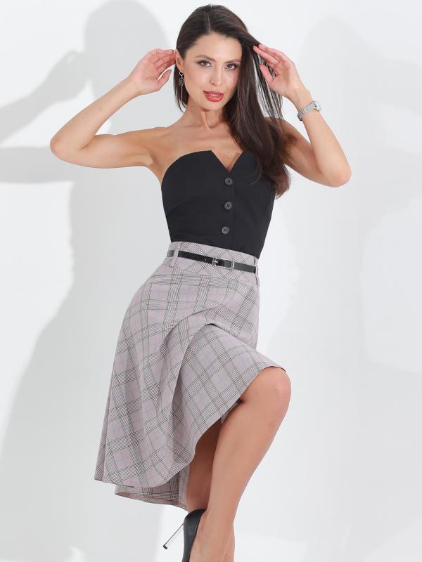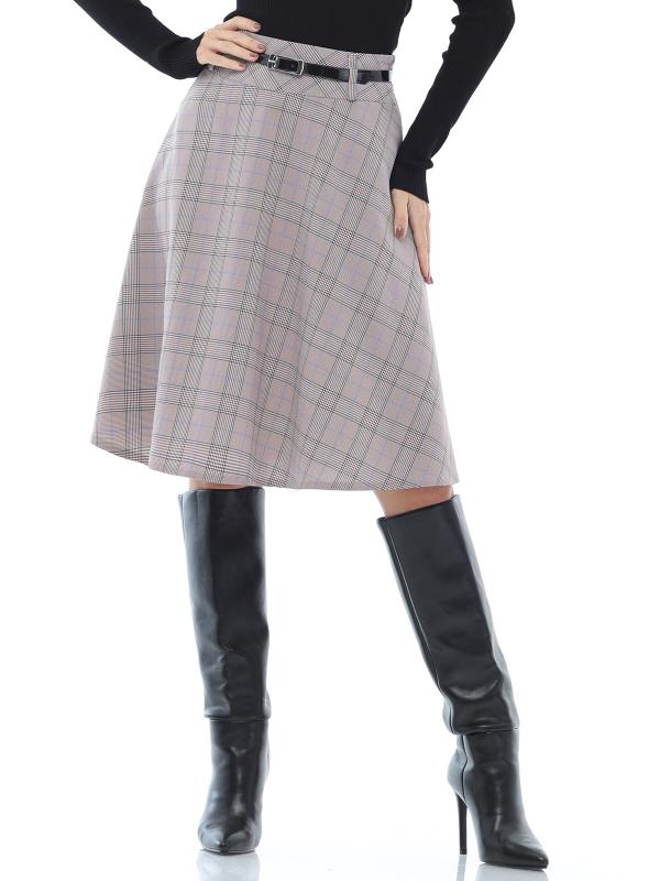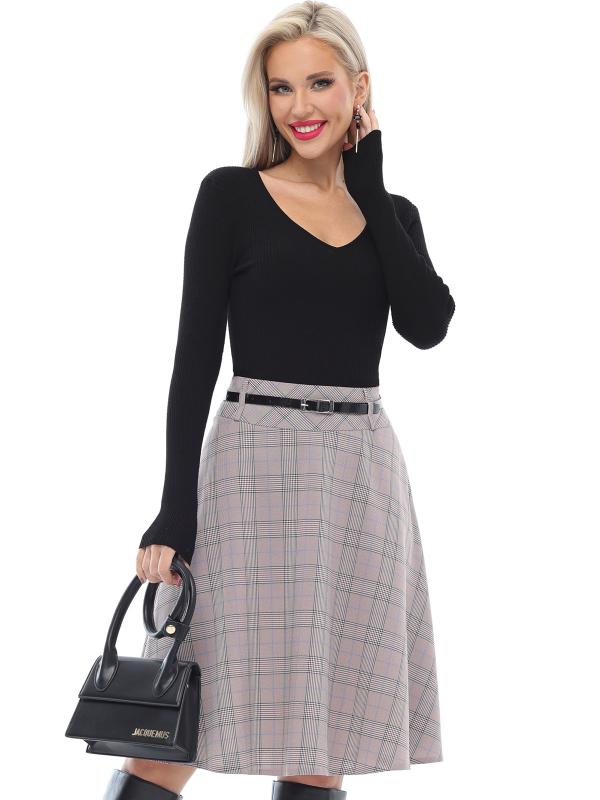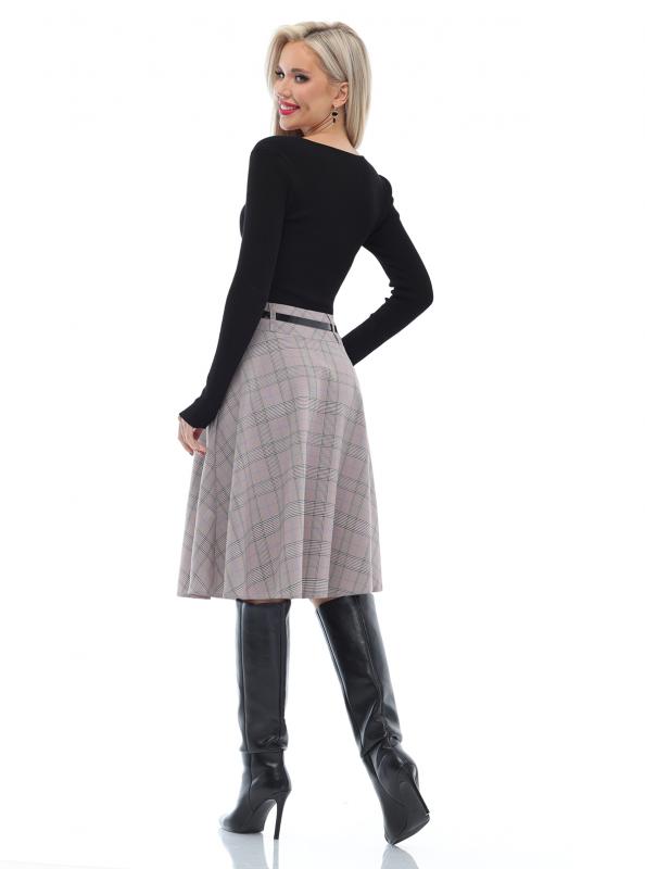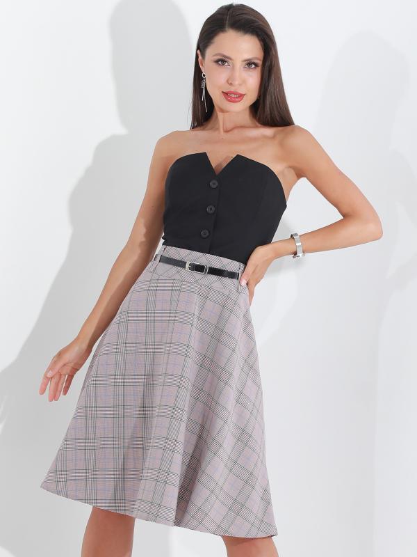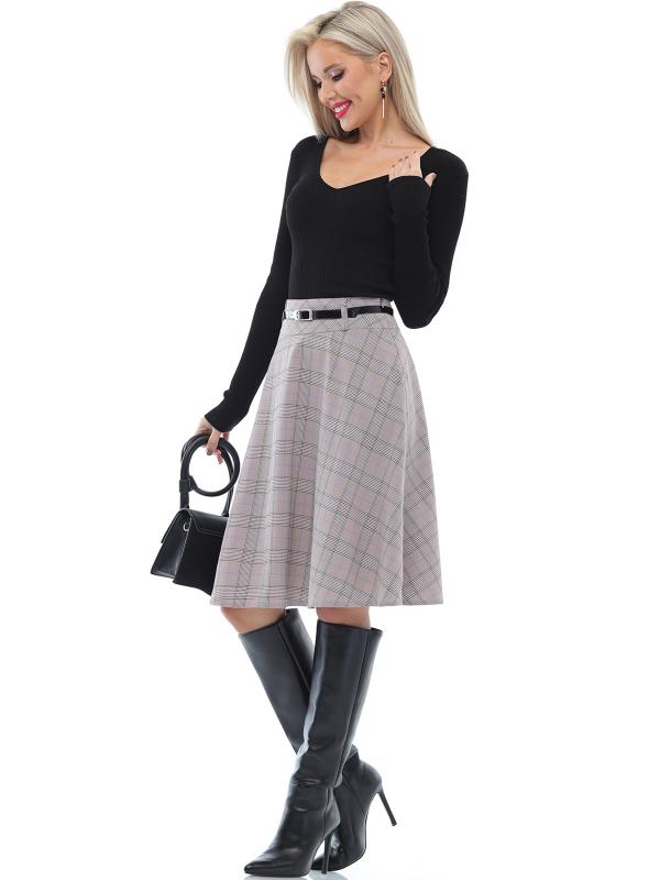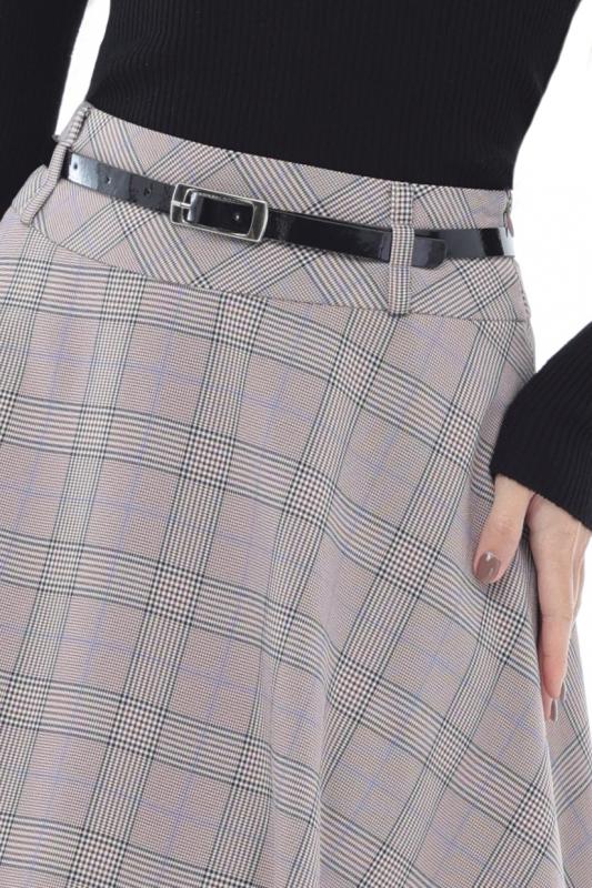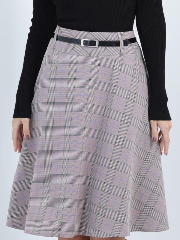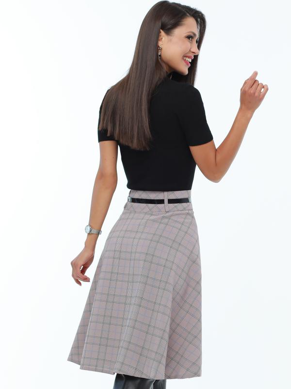 Расклешенная юбка в клетку с ремешком — элегантная модель, которая поможет создать неповторимый женственный образ с нотками ретро-стиля. А-силуэт подчеркивает талию, плавно расширяется к низу и надежно маскирует нюансы в области живота и бедер. Юбка с мягкими складками эффектно струится в движении и заставляет окружающих провожать вас взглядом. Тонкий черный ремешок из комплекта стильно дополняет юбку и становится изящным завершающим штрихом как делового, так и повседневного образа. Модель выполнена из плотной, приятной к телу ткани, которая практически не мнется и хорошо держит форму. Чтобы изделие долго радовало вас красотой и качеством, рекомендуется стирать его в деликатном режиме при температуре не более 30 градусов. Обмеры изделия Длина 62 см Характеристики Комплектация: Юбка, ремешок