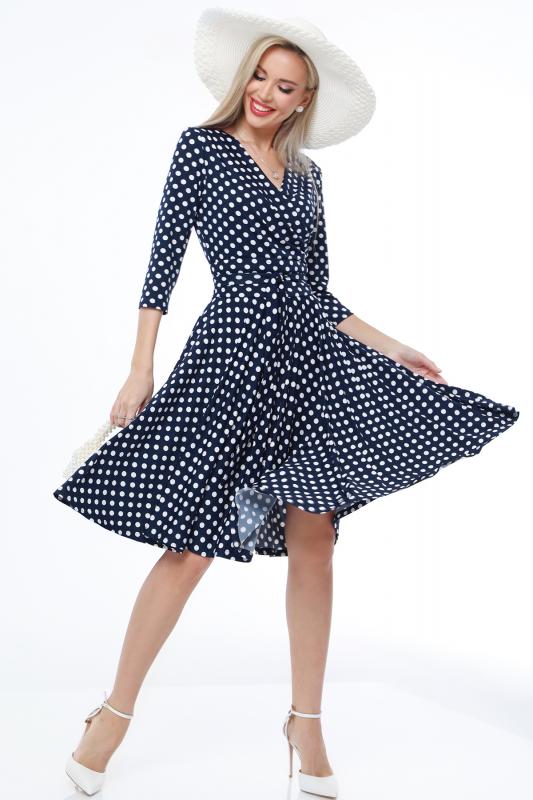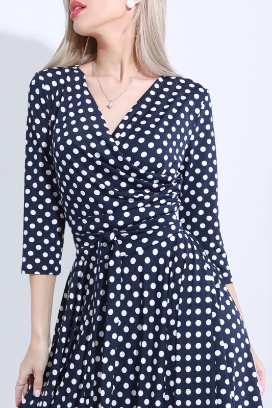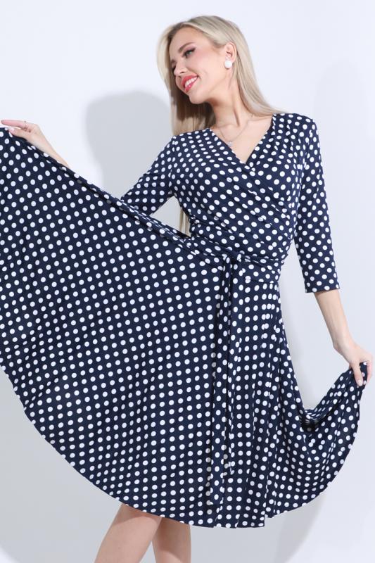 Платье с запахом — элегантная и в то же время оригинальная модель, которая преобразит как деловой, так и вечерний гардероб. Приталенный силуэт с асимметричной юбкой подчеркивает женственные изгибы тела. V-образный вырез зрительно удлиняет шею, создает акцент на зоне декольте и добавляет изящности. Фасон на запах в сочетании с грамотной расцветкой позволяют визуально скорректировать фигуру, выглядеть более стройно и подтянуто. Платье выполнено из плотной, приятной на ощупь ткани, которая отлично держит форму и слегка тянется. Чтобы изделие долго радовало вас красотой и качеством, рекомендуется стирать его в деликатном режиме при температуре не более 30 градусов и сушить в расправленном виде. Обмеры изделия Длина:
