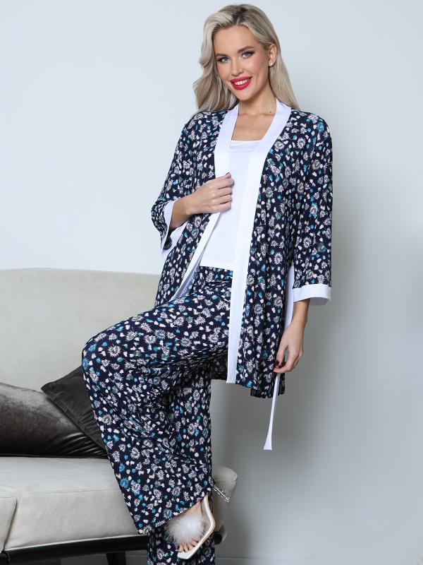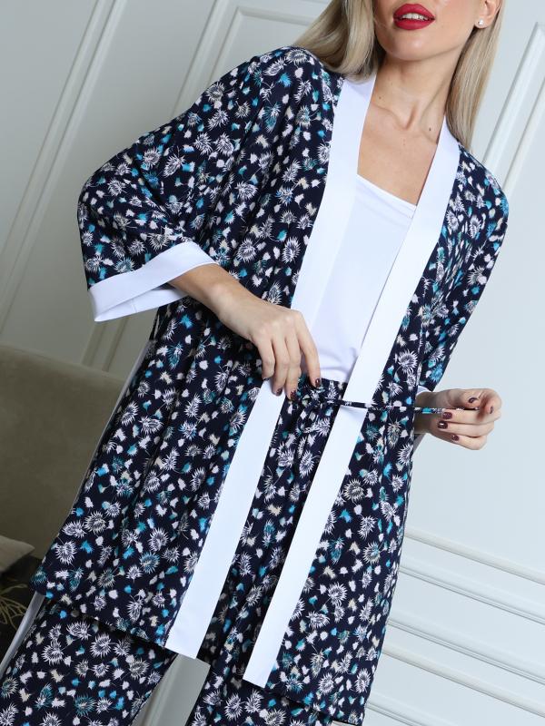 Подарите себе комфорт и уют с этим стильным домашним костюмом, состоящим из топа, халата и брюк! Идеальный набор для отдыха, утренних ритуалов или вечернего расслабления. Комплект из трех элементов: Топ: мягкий и удобный, идеально подходит для комфорта в течение всего дня. Халат: легкий и уютный, с поясом для регулировки посадки. Брюки: свободного кроя, с эластичным поясом для максимального удобства. Лаконичный стиль, который подчеркивает вашу женственность и создает ощущение уюта. Этот комплект станет вашим любимым выбором для тех моментов, когда хочется расслабиться и насладиться комфортом. Подарите себе удовольствие от каждого дня с этим уютным домашним костюмом! Обмеры изделия Топ: