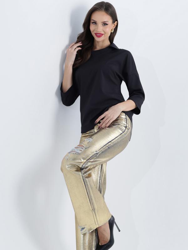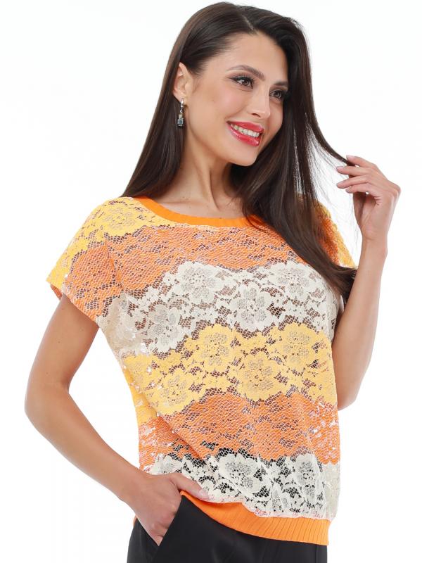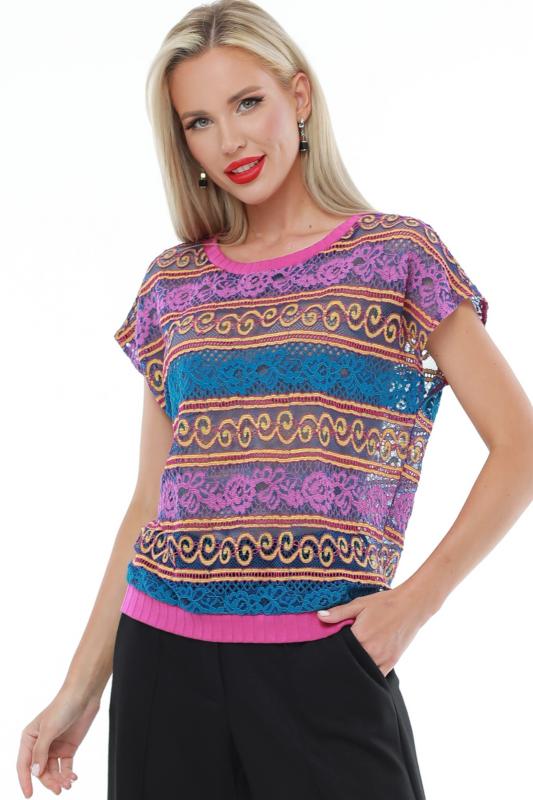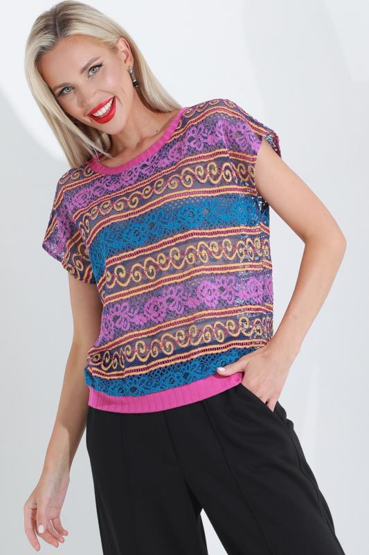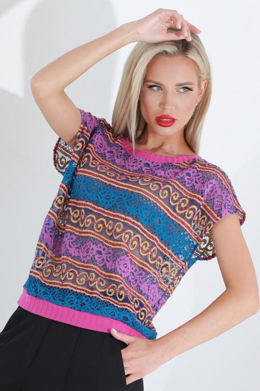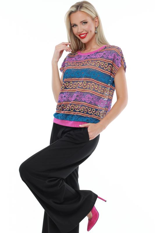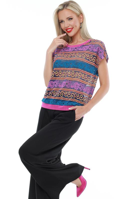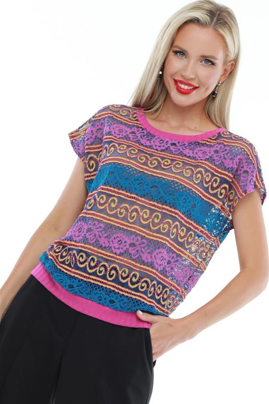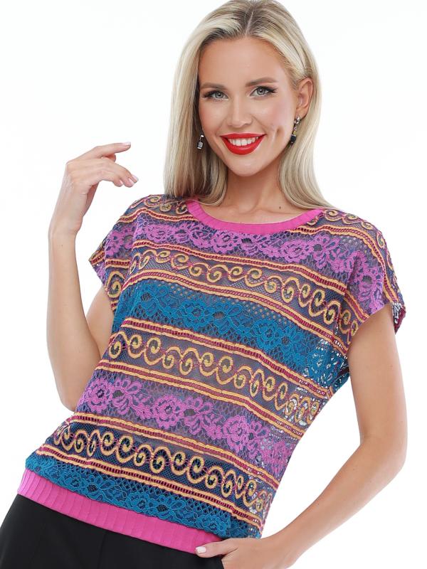 Утонченная блузка с коротким рукавом — базовая модель, которая с легкостью впишется в повседневные, деловые и вечерние образы. Прямой фасон с округлым вырезом, небольшими разрезами по бокам и слегка удлиненной спинкой прекрасно смотрится на женщинах любой комплекции и позволяет чувствовать себя комфортно. Короткие цельнокроеные рукава добавляют образу легкости и оригинальности. Модель выполнена из легкого, приятного к телу материала, который не просвечивает, слегка тянется и эффектно струится в движении. Несмотря на то, что качественная ткань хорошо переносит стирку и не выцветает, рекомендуется стирать блузку в деликатном режиме при температуре не более 30 градусов. Обмеры изделия Длина: