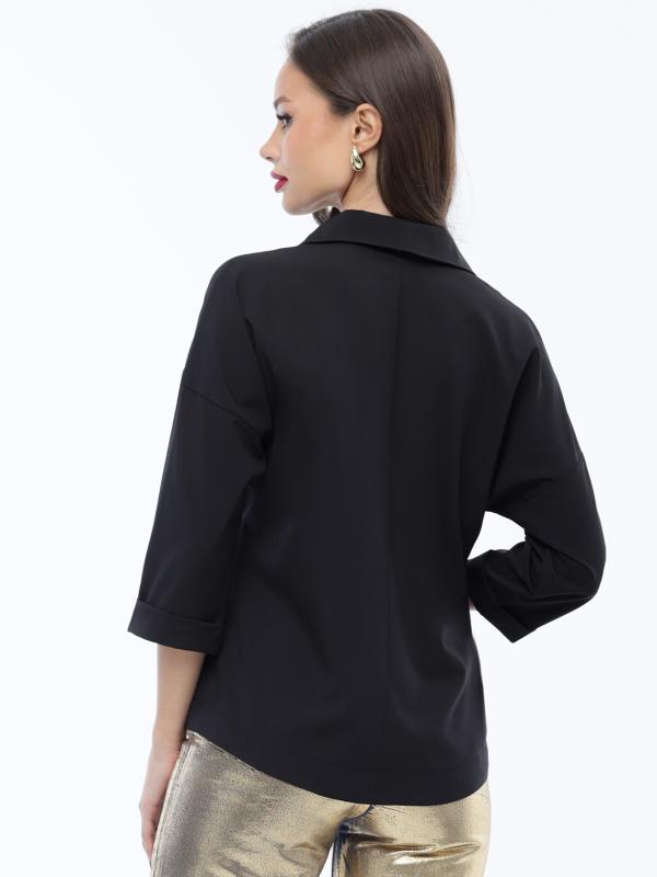 Жакет с рукавом ¾ — элегантный вариант, который украсит любой образ. Модель приталенного фасона красиво подчеркивает женственные изгибы и помогает визуально скорректировать фигуру. Рукава длиной ¾ приоткрывают изящные запястья и позволяют дополнить образ наручными украшениями. Чтобы жакет долго радовал вас красотой и качеством, рекомендуется стирать его отдельно от других вещей в деликатном режиме при температуре до 30 градусов и использовать мягкие моющие средства. Обмеры изделия Длина: