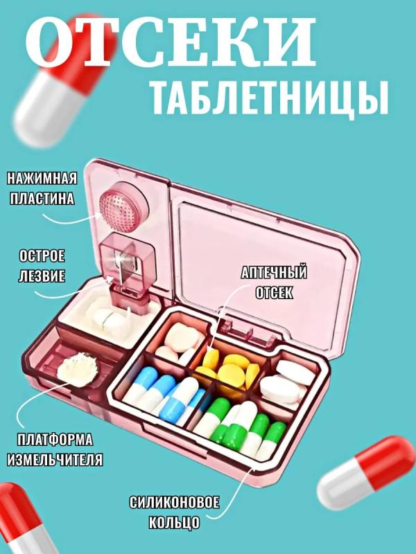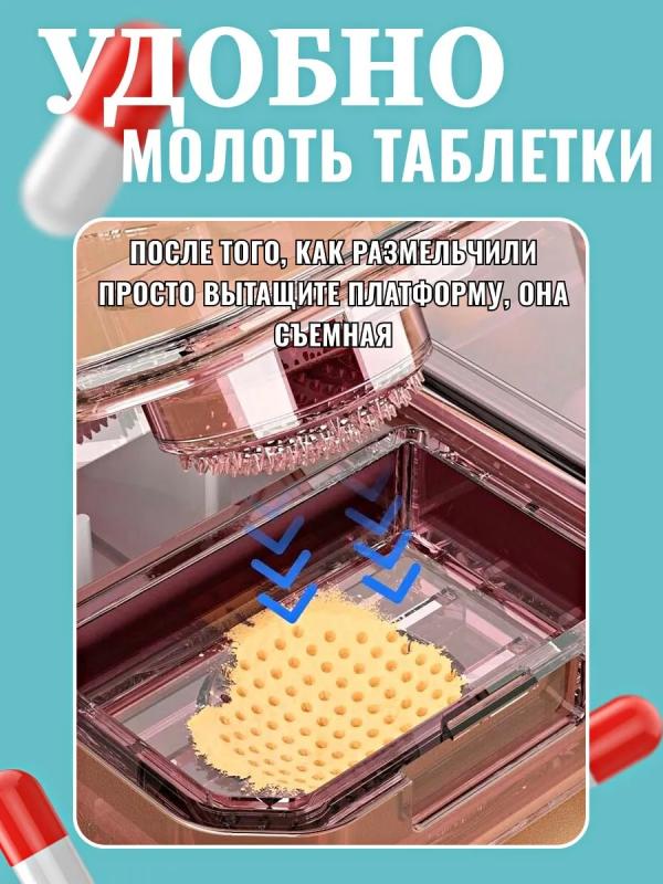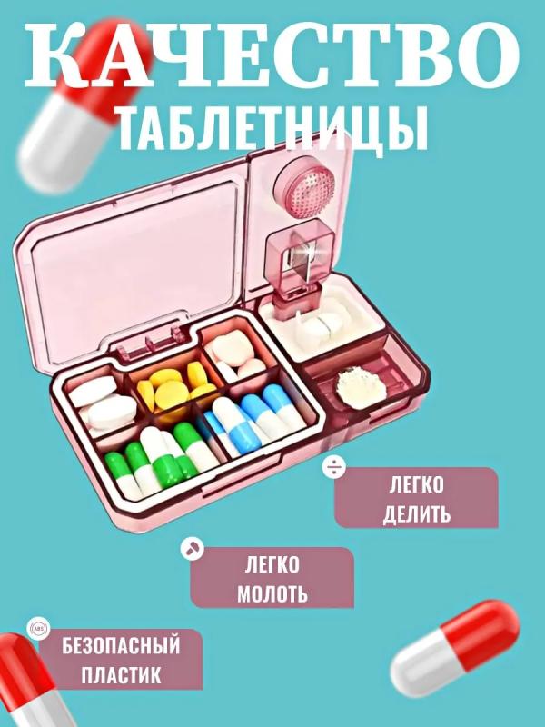 Таблетница с делителем и измельчителем из пластика - это удобное и многофункциональное устройство, предназначенное для хранения и измельчения таблеток или капсул. Она способна значительно облегчить процесс приема лекарств, особенно для людей с ограниченными возможностями или тех, у кого есть проблемы с глотанием целых таблеток. Основные характеристики таблетницы включают: 1.Делитель для таблеток: Устройство оснащено делителем, позволяющим разделить таблетку или капсулу на две или более части. Это особенно удобно для пациентов, которым необходима точная дозировка лекарств. 2.Измельчитель: Таблетница также оснащена измельчителем, который позволяет превратить твердые лекарственные формы в порошок. Это полезно для людей, которым сложно проглотить большие таблетки. 3.Отсеки: Таблетница имеет 5 отсеков для хранения таблеток или капсул на разные временные промежутки. Это помогает пациентам организовать прием лекарств на протяжении дня. 4.Прочный и легкий пластик: Материал изготовления- высококачественный