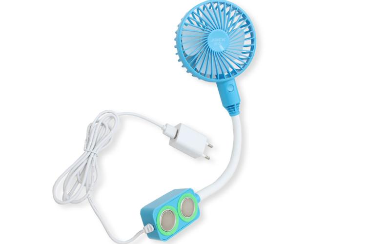 Портативный настольный вентилятор на гибкой ножке с удобным и надежным креплением на два магнита, оснащен защитной силиконовой накладкой. Имеет три режима мощности (макс. 4 Вт). Подключается к стандартной сети питания. Обеспечивает хороший обдув за счет четырех лопастей, работает тихо. На корпусе расположена механическая кнопка управления. Кабель питания оснащен USB-разъемом. Макс. скорость: 3428 об.-мин.