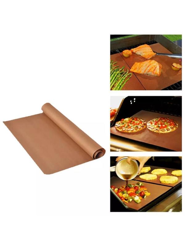 Тефлоновый коврик 33 x 40см для выпечки и запекания - это антипригарные термостойкие коврики многоразового использования. Плотный 220микрон, подойдет для гриля и барбекю на природе. Положите на решетку при приготовлении блюд на костре (можно даже пожарить яйца). Можно запекать рыбу, мясо, овощи и самую разнообразную выпечку. Двусторонний пекарский лист подойдет для приготовления рулета и эклеров, макаронс и бисквитов, пастилы и сухофруктов. Преимущество коврика в том, что пища не пригорает, а сам коврик моется легко, как обычная кухонная посуда. Материал не впитывает запахи и аромат прошлого блюда не распространится на следующее. Можно использовать для раскатки теста. Заморозьте на нем полуфабрикаты. Листик позволяет легко отделить продукт - ничего не прилипает. Достаточно слегка изогнуть коврик, и выпечка отстаёт сама. Коврик можно использовать как защиту для плиты от жира и брызг. Легко помыть - сначала протираем сухой салфеткой потом споласкиваем под струей воды. Легко режется под размер противн