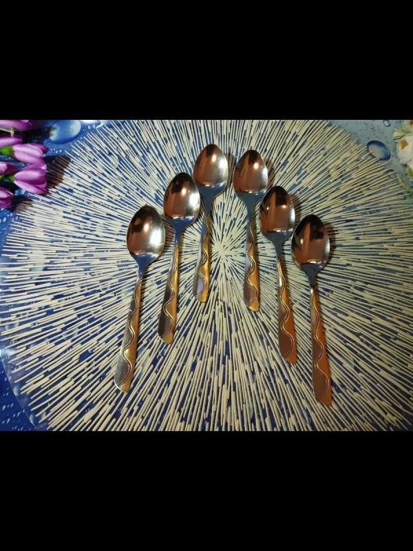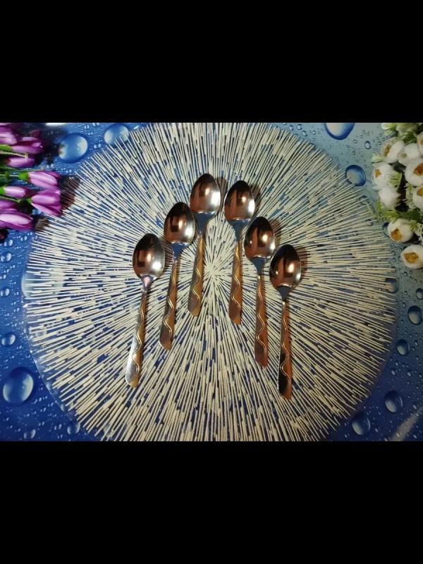 Набор из 6-ти столовых приборов отличаются антикоррозийными свойствами и высокой устойчивостью к кислотам и щелочи. Набор чайных ложек выполнен из высококачественной нержавеющей стали, которая проходит тщательный контроль. Такая сталь не изменяет вкус и цвет пищи и не выделяет вредные вещества. Ручки столовых приборов украшены красивым стильным узором под золото. Стильный набор столовых приборов станет настоящим украшением любого праздничного или обеденного стола. Внимание! Перед первым применением тщательно промойте приборы для сервировки мягкой губкой с моющим средством.