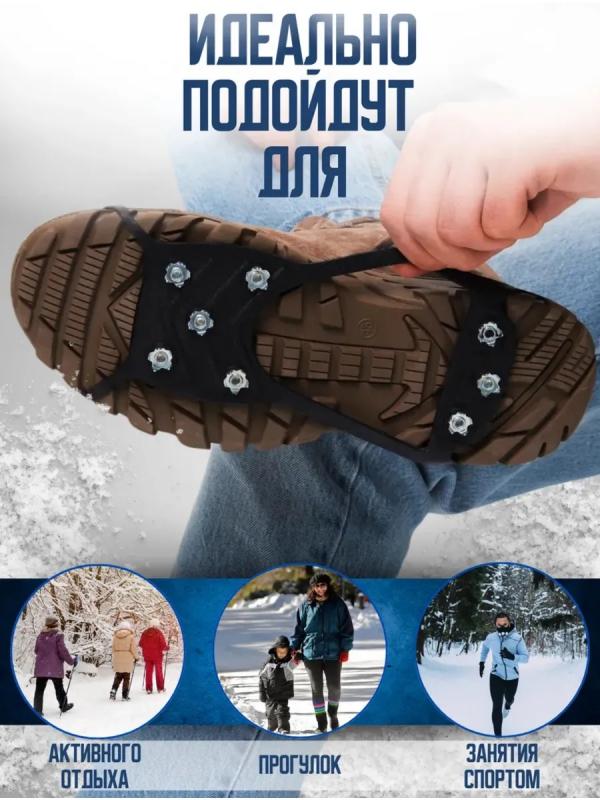 Ледоступы на обувь универсальные с 8 шипами представляют собой идеальное решение для тех, кто ищет надежную защиту от скольжения на льду и снегу. Эти ледоступы спроектированы с учетом потребностей широкой аудитории, включая спортсменов, любителей активного отдыха и просто тех, кто нуждается в дополнительной поддержке при ходьбе по скользким поверхностям. Каждый набор содержит 8 шипов, которые обеспечивают отличное сцепление с поверхностью, уменьшая риск падения. Универсальный дизайн позволяет использовать ледоступы с различными видами обуви, делая их универсальным выбором для всей семьи. Легкость в установке и снятии делает их удобными в использовании, а прочная конструкция гарантирует долговечность и надежность. Выбирая ледоступы, вы получаете качественный и эффективный способ защиты от опасностей зимней погоды, позволяющий вам наслаждаться активными прогулками, спортом и повседневными делами без опасений за свою безопасность.Ледоступы с 8 стальными шипами звёздочками позволят заниматься активным