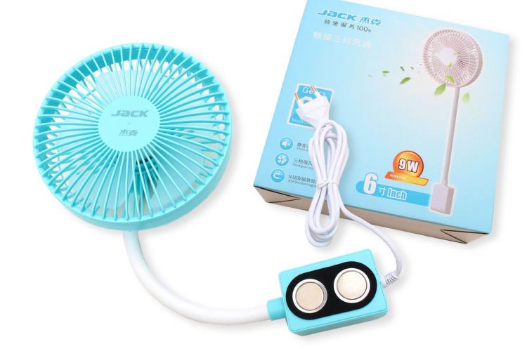Портативный настольный вентилятор на гибкой ножке с удобным и надежным креплением на два магнита, оснащен защитной силиконовой накладкой. Три режима мощности (макс. 9 Вт). Подключается к стандартной сети питания. Обеспечивает естественный и приятный обдув за счет пяти лопастей, работает бесшумно. На корпусе расположена сенсорная кнопка управления. Вентилятор имеет съемную решетку, что позволяет легко его чистить. Макс. скорость: 3000 об.-мин.