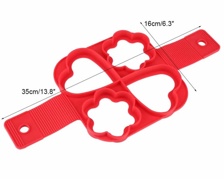 Силиконовая антипригарная форма для омлета и блинов. Особенности: - Безопасный материал: Изготовлена из пищевого силикона, безвредного, антипригарного, без запаха и многоразового использования. - Удобный дизайн: Две удлиненные ручки облегчают извлечение готовых изделий, предотвращая ожоги. - Антипригарная поверхность. - Многофункциональность: Идеальна для приготовления кексов из яиц, жареных или варёных яиц, блинов, омлетов и бургеров. Лучшие результаты достигаются, когда кольца для яиц лежат плоско на поверхности приготовления.