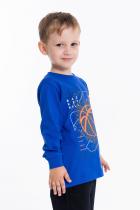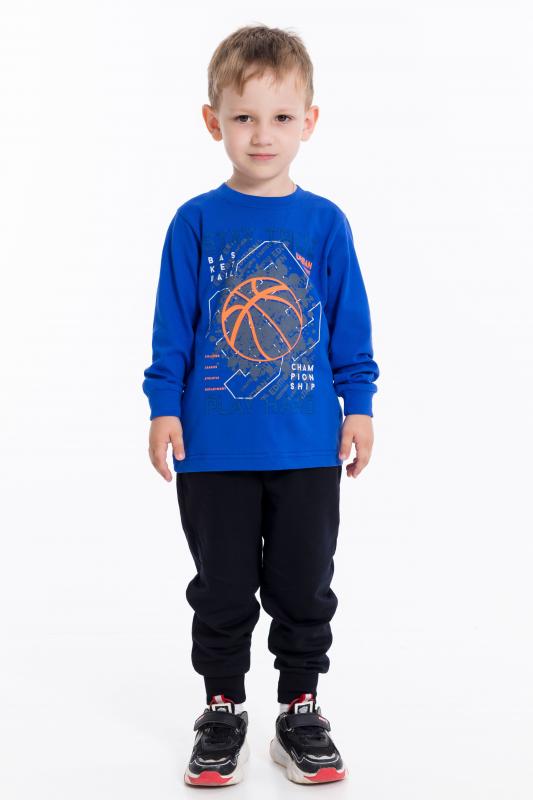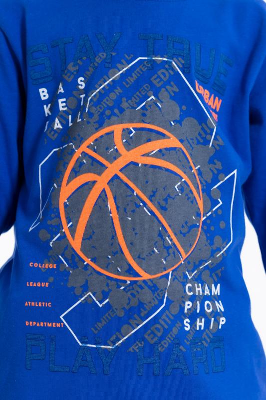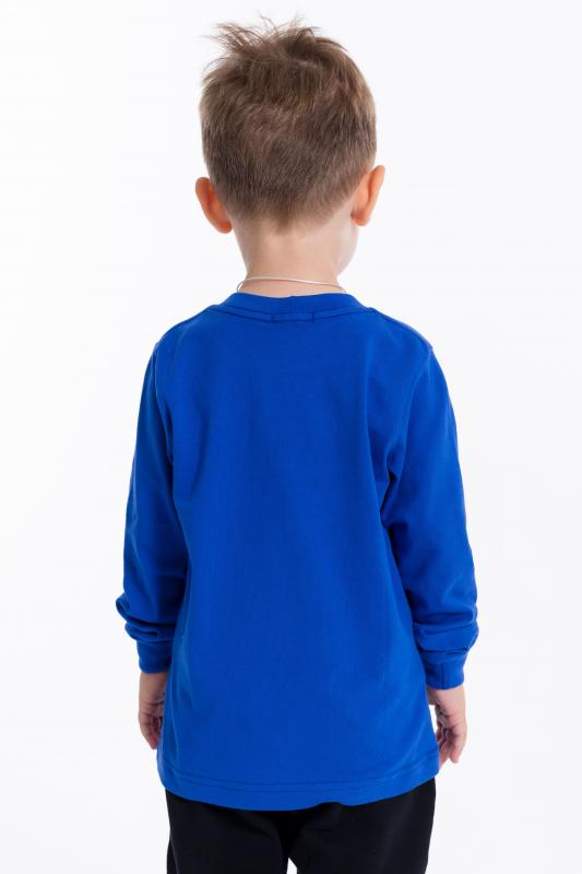 Футболка с длинным рукавом выполнена из однотонной кулирки. С притачной планкой по горловине и манжетами из рибаны. Спереди нанесён принт.