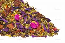 Сбор с мелиссой, душицей, цветками ромашки, клевера, лепестками василька, зеленым чаем, кусочками ананаса, моркови, клубники и черносливом, ягодами черноплодной рябины и калины. Настой с приятным вкусом и ароматом с цветочными и ягодными нотками. С приятным освежающим послевкусием. Прекрасный чай для всей семьи!