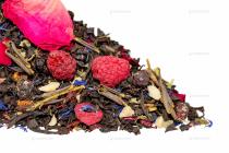 Черный индийский чай с добавлением иван-чая, ягод брусники, черной смородины и малины, кусочков яблок, шиповника, листьев ежевики, веточек саган-дайля, лепестков синего василька и розы. Отличный чай для снятия усталости и получения заряда бодрости. Настой коричневого цвета, насыщенный и ароматный.