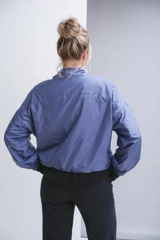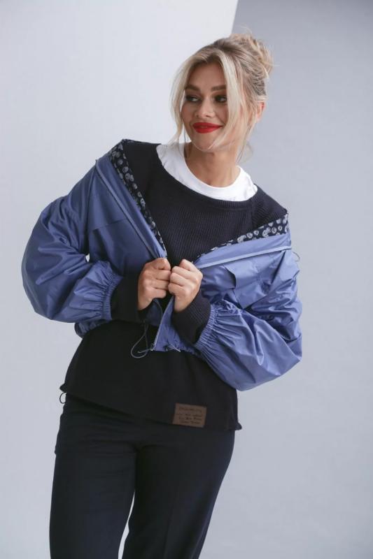 Куртка из ткани с водоотталкивающей пропиткой на мягкой вискозной подкладке. Застежка на тесьму-молнию. Ширина по низу и по краю воротника регулируется резинкой. По переду накладные карманы.