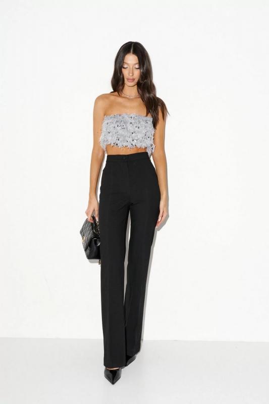 Нежнейший топ прилегающего силуэта выполнен из полотна светло-серого цвета с перьями. Акцентная нежная деталь Вашего образа. Характеристики: прилегающий силуэт, подкладка, прямой вырез горловины , верх и низ изделия на резинке. Длина изделия 24 см.